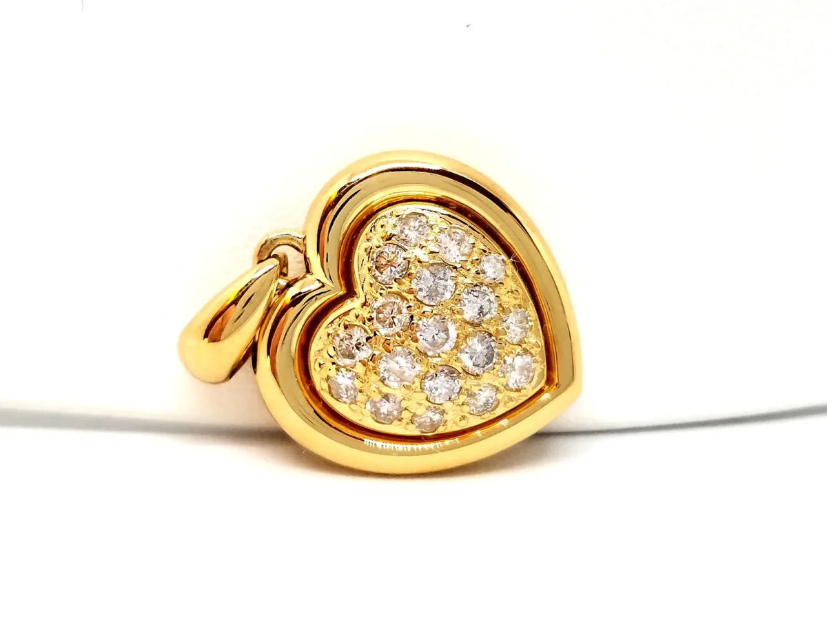 Pendentif coeur en or jaune 750 millièmes (18 carats), pavé de 18 diamants taille brillant H-SI pour environ 0,72 ct au total, dimensions (bélière incluse): 2,96 cm x 2 cm, poids total: 5,57 g, poinçon tête d’aigle, excellent état