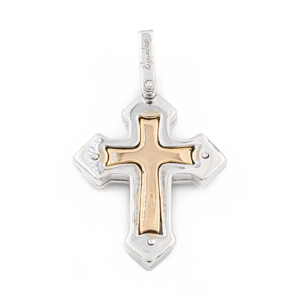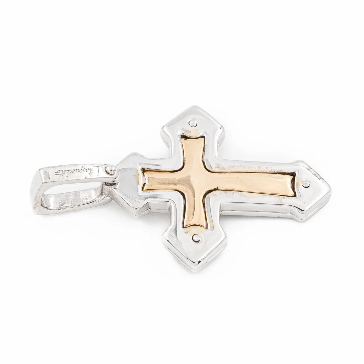 Pendentif en or blanc et or jaune 750 millièmes (18 carts), croix, dimensions ( bélière non incluse) : 2,38 cm x 1,88 cm, poids total : 4,73 g, poinçon tête d’aigle, excellent état