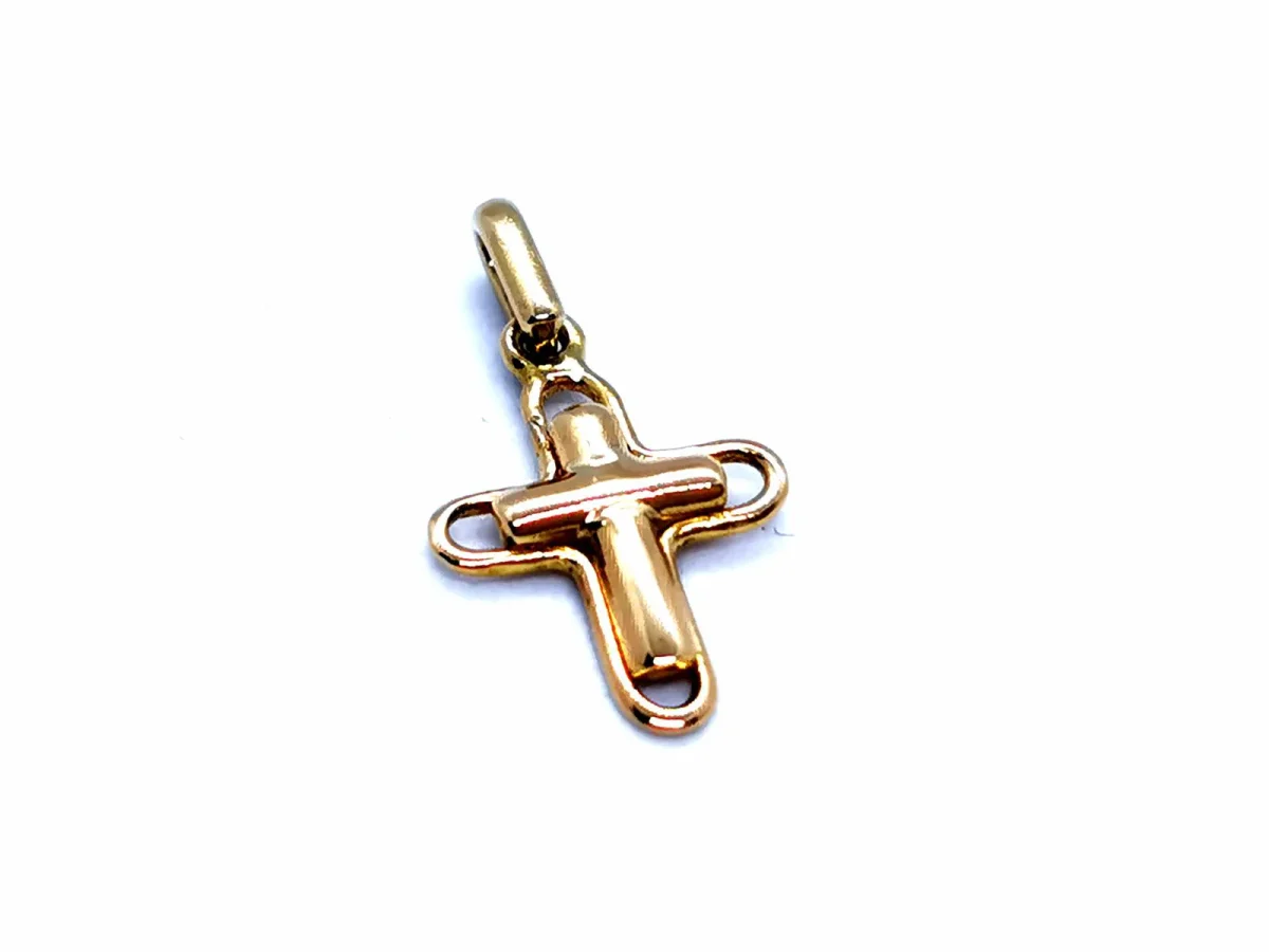 Pendentif croix, en or jaune 750 millièmes (18 carats) testé, dimensions (bélière incluse): 1,94 cm x 1,05 cm, poids total: 0,82 g, excellent état