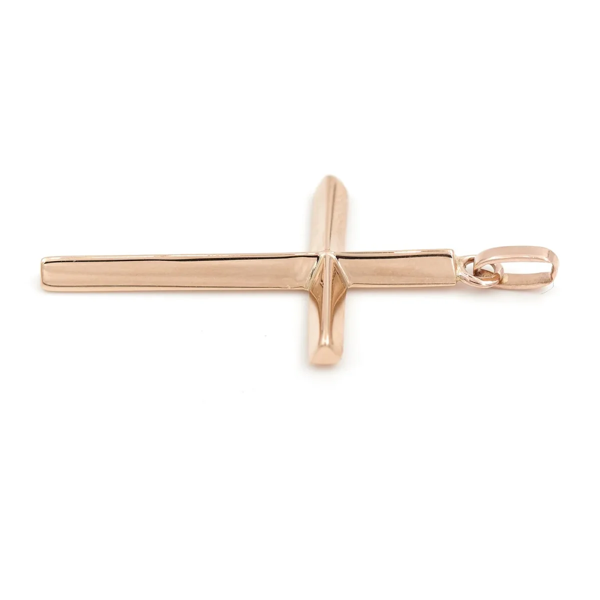 Pendentif religieux en or rose 750 millièmes (18 carats), croix, longeur : 1,85 cm, largeur : 3,7 cm, épaisseur : 0,22 cm poids total : 2,67 g, testé, excellent état.
