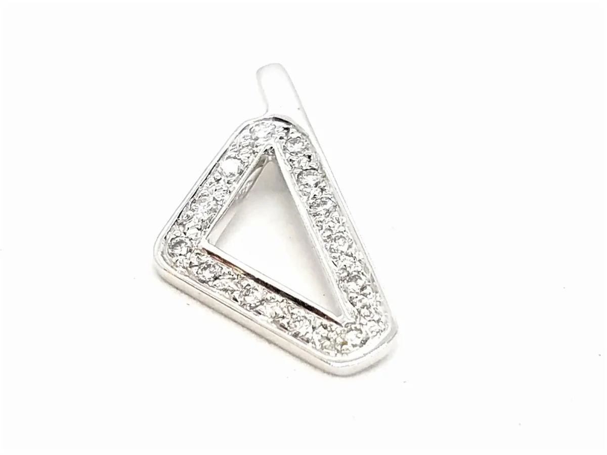 Pendentif or blanc 750 millièmes (18 carats) testé, motif pavé de 13 diamants taille brillant H-SI pour environ 0,10 ct au total, dimensions: 2,1 cm x 1,05 cm (bélière incluse), poids total: 1,55 g, excellent état
