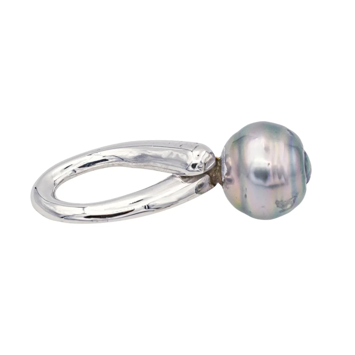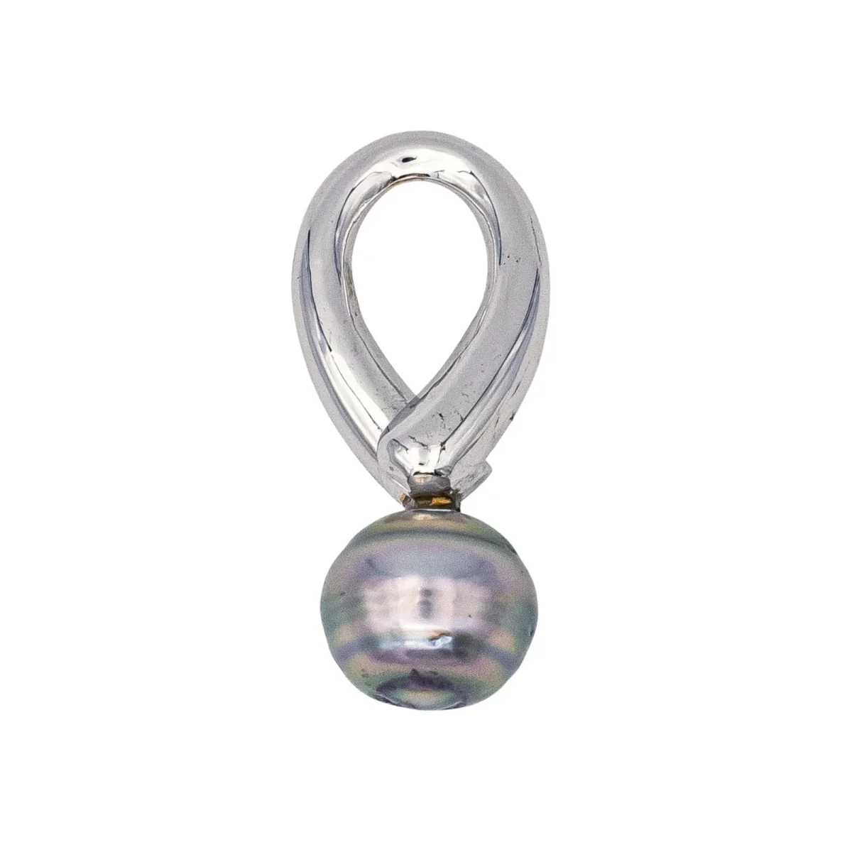 Pendentif en Or blanc 750 millièmes (18 carats), Perle de Tahiti de diamètre 9,20 mm, dimensions pendentif : 2,62 cm x 1,10 cm, poids total : 3,56 g, poinçon tête d’aigle, excellent état