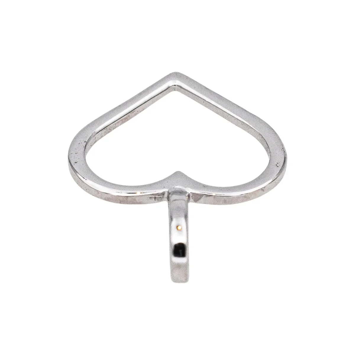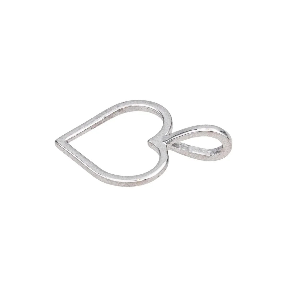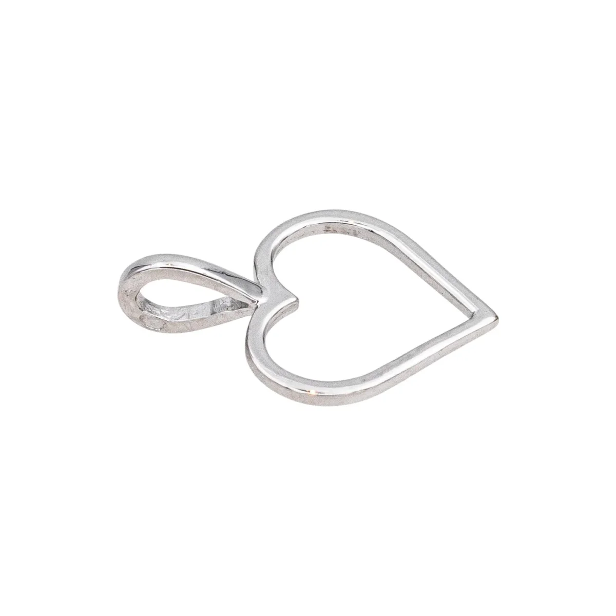 Pendentif en or blanc 750 millièmes (18 carats), motif cœur ajouré, dimensions avec la bélière : 1,67 cm x 1,15 cm, poids total : 0,52 g, poinçon tête d’aigle, excellent état