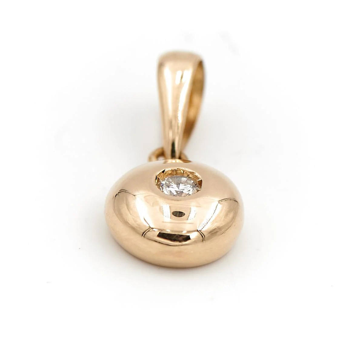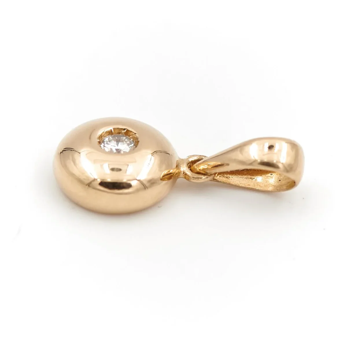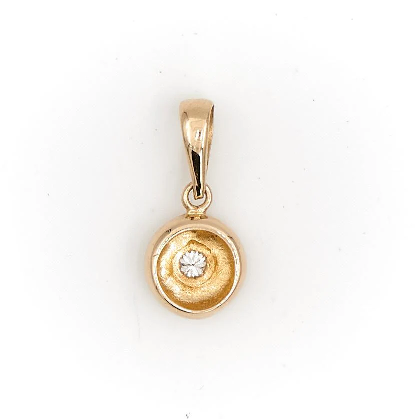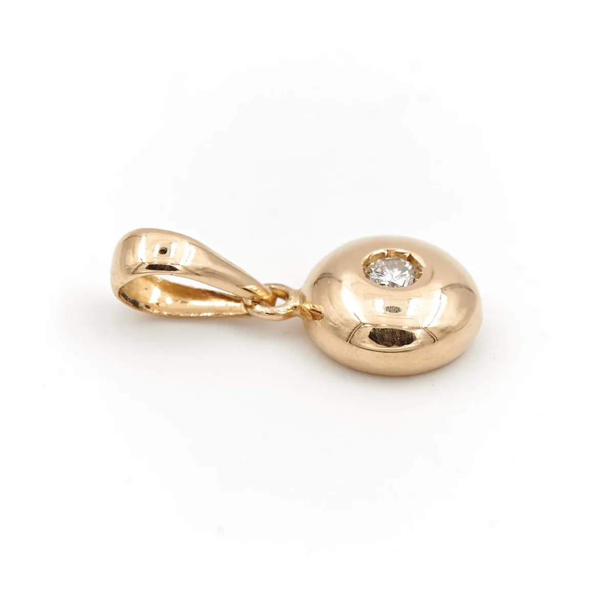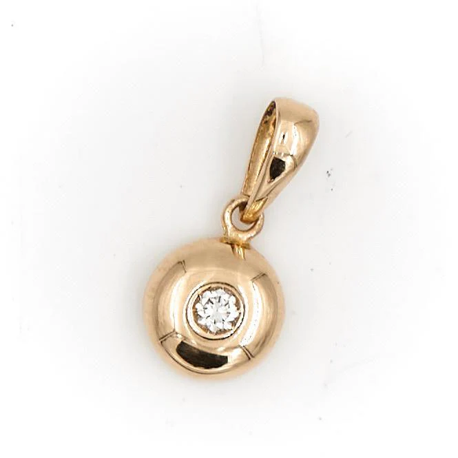Pendentif en or jaune 750 millièmes (18 carats), diamant de environ 0,03 carat, environ H/VS, longueur : 0,7 cm, largeur : 1,4 cm, épaisseur : 0,3 cm, poids total : 0,84 g, testé, excellent état.