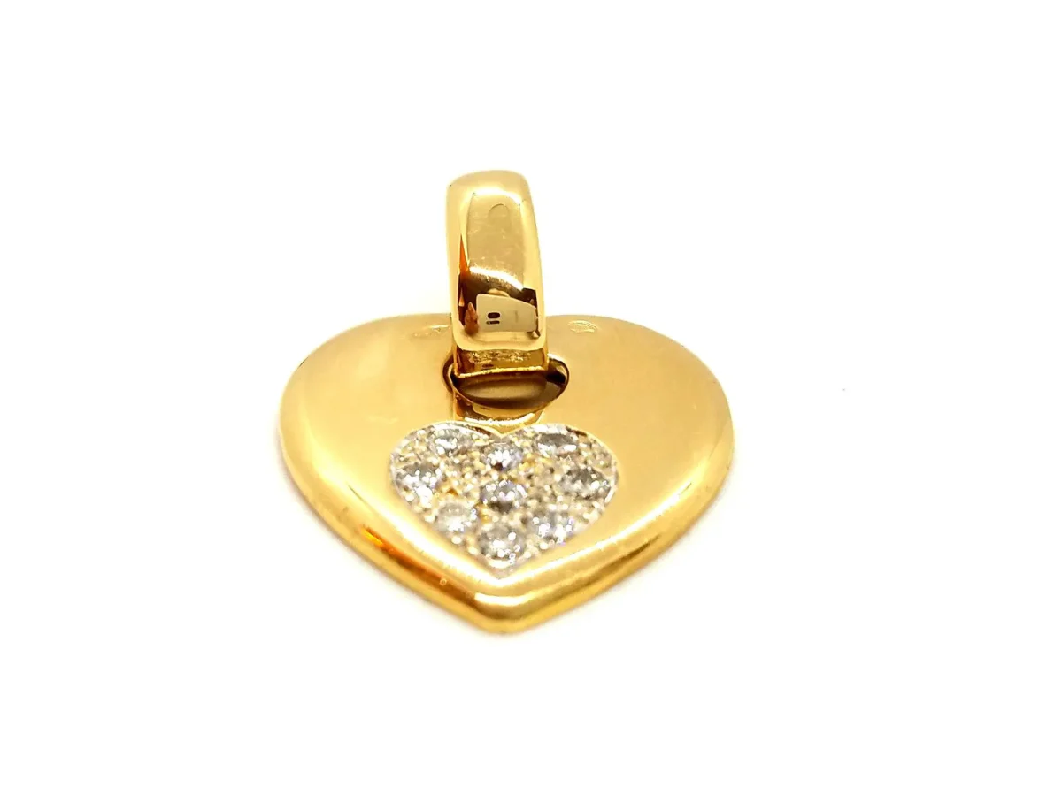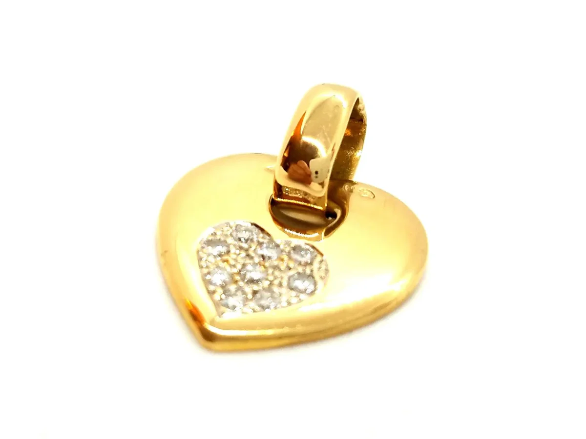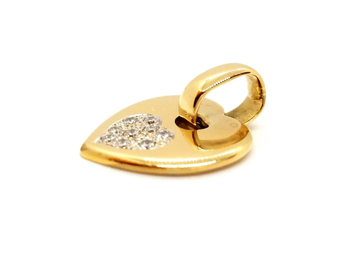 Pendentif coeur, en or jaune 750 millièmes (18 carats), serti de 9 diamants taille brillant G-H VS pour environ 0,18 ct au total, dimensions (bélière incluse): 2,55 cm x 2 cm, poids total: 6,73 g, poinçon tête d’aigle, excellent état