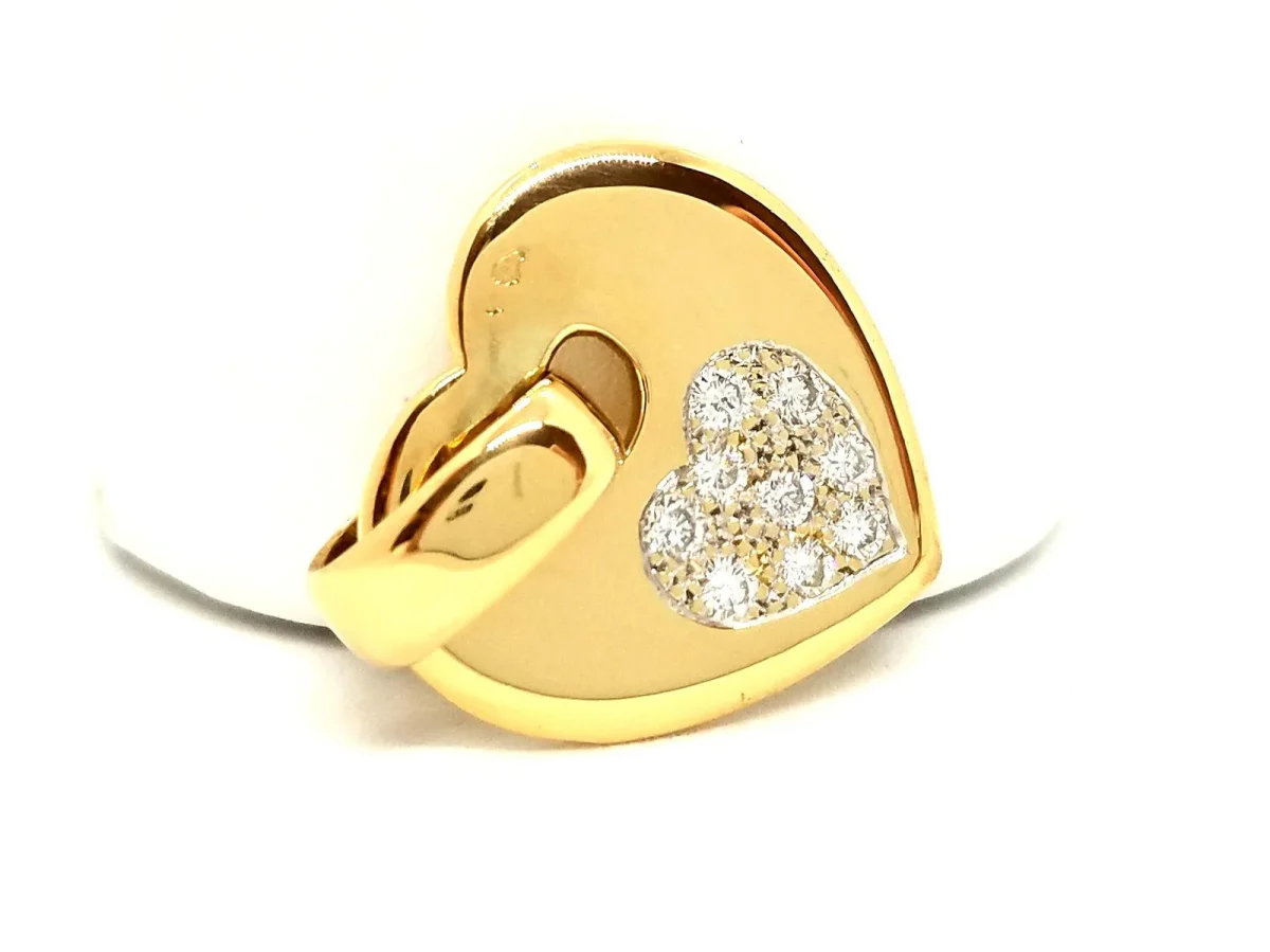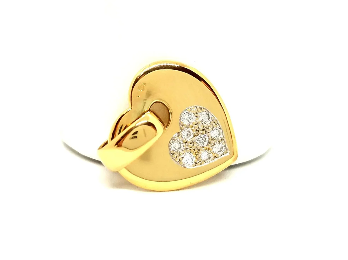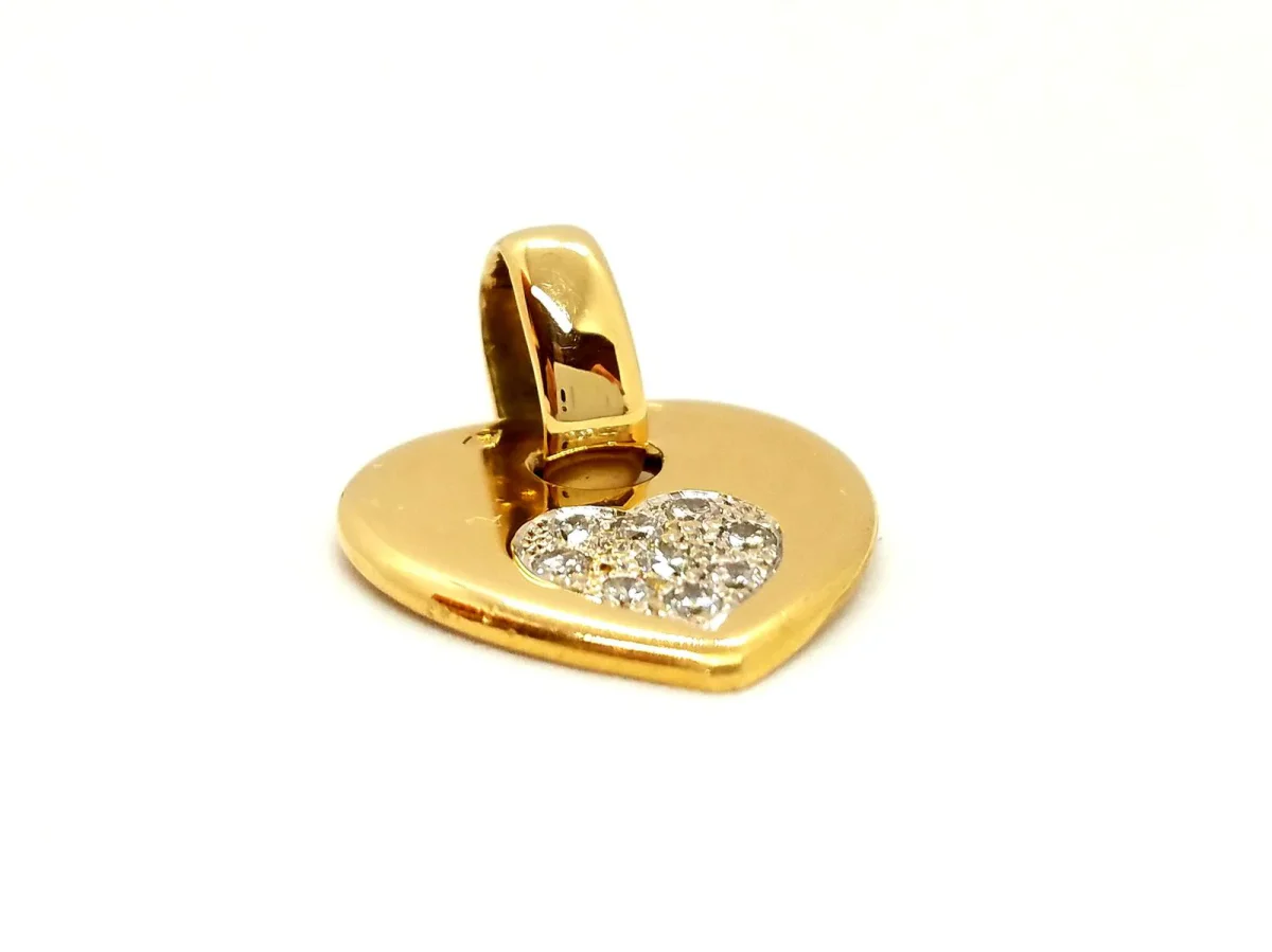 Pendentif coeur, en or jaune 750 millièmes (18 carats), serti de 9 diamants taille brillant G-H VS pour environ 0,18 ct au total, dimensions (bélière incluse): 2,55 cm x 2 cm, poids total: 6,73 g, poinçon tête d’aigle, excellent état