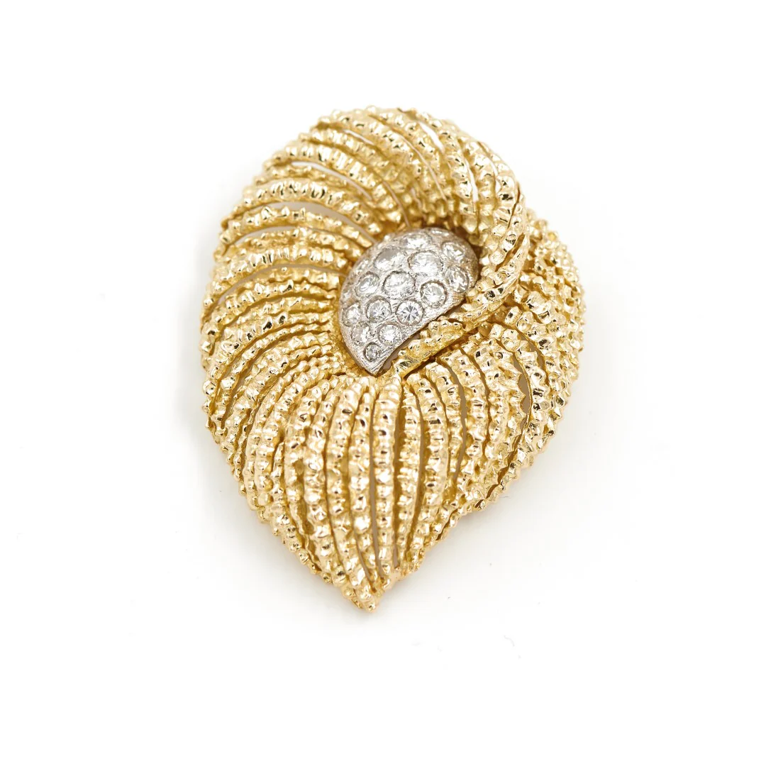 Pendentif en or jaune et or blanc 750 millièmes (18 carats), Serti de 19 diamants taille brillants de tailles différentes, Poids total des diamants: environ 1,10 cts, Largeur: 3,46 cm, Longueur: 4,8 cm, Profondeur: 1 cm, Poids total du pendentif: 21,68 g, Poinçon hibou, Excellent état
