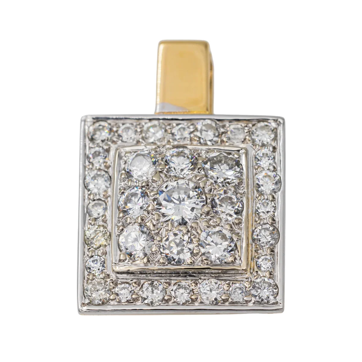 Pendentif pavé de diamants, en or jaune et or blanc 750 millièmes (18 carats), 1 diamant central taille brillant, estimé H/VS, d’un poids total d’environ 0,15 ct, entouré de 8 diamants taille brillant, estimés H/VS, d’un poids total d’environ 0,4 ct, (chaque diamant d’un poids d’environ 0,05 ct), et de 24 diamants taille brillant, estimés H/VS, d’un poids total d’environ 0,48 ct, (chaque diamant d’un poids d’environ 0,05 ct), poids total des diamants: environ 1,03 cts, dimensions avec la bélière: 2,16 cm x 1,52 cm, poids total: 5,81 g, poinçon tête d’aigle, excellent état