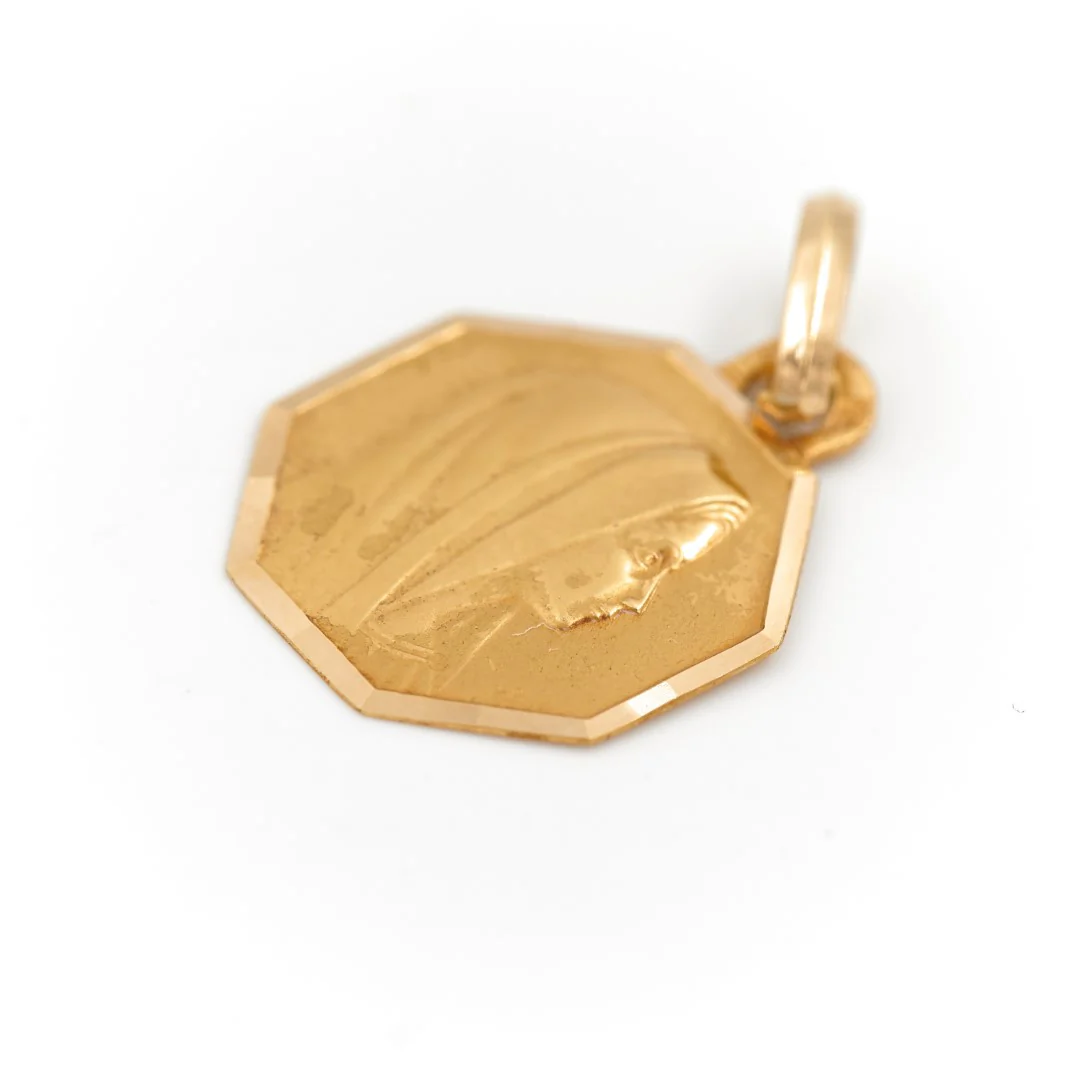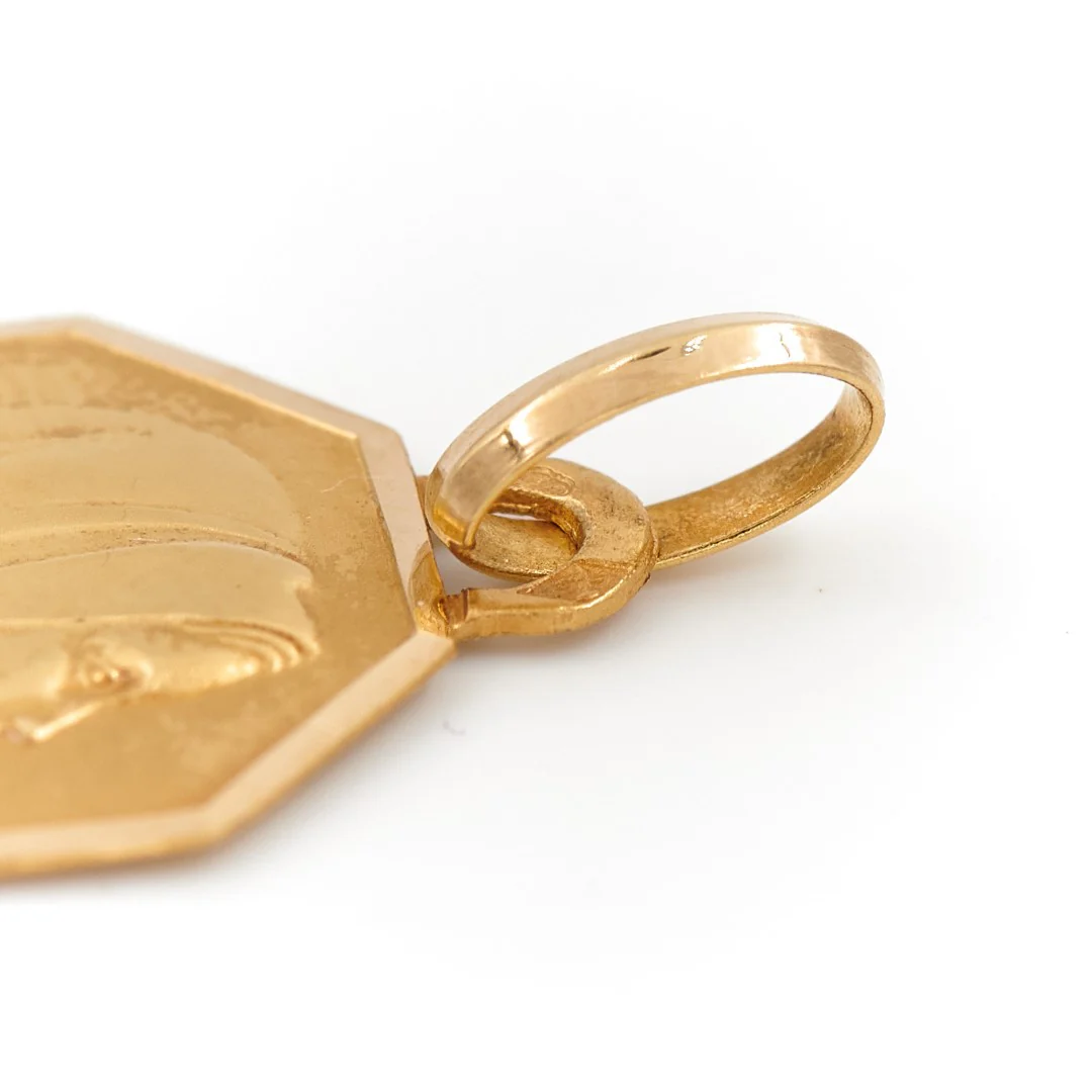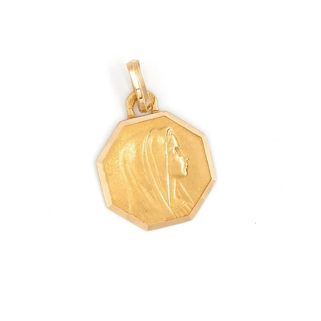 Médaille octogonale de la Viegre Marie de profil en or jaune 750 millièmes (18 carats), largeur:1,39 cm, poids total: 1,07 poinçon tête d’aigle, excellent état
