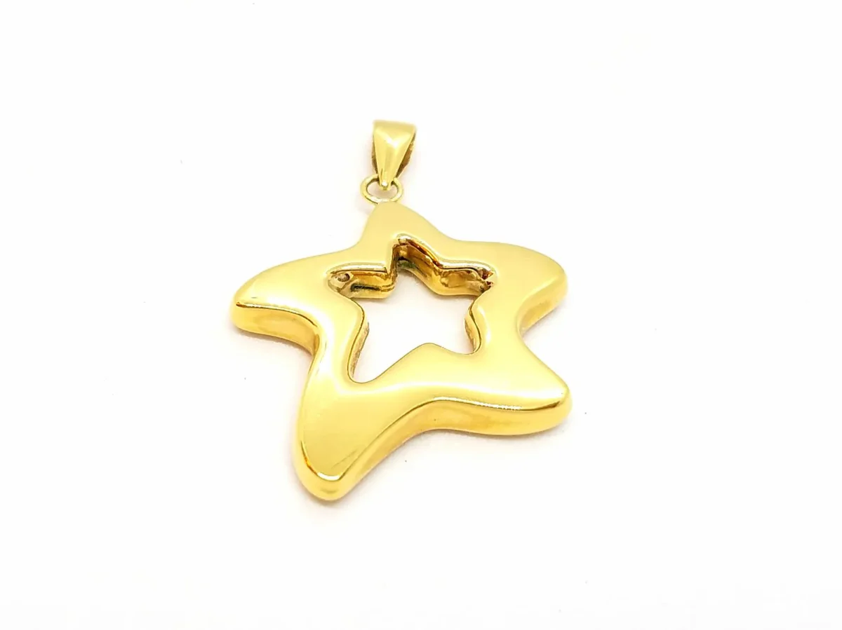 Pendentif étoile de mer en or jaune 750 millièmes (18 carats) testé, dimensions: 3,4 cm x 2,37 cm (bélière incluse), poids total: 2,88 g, état neuf