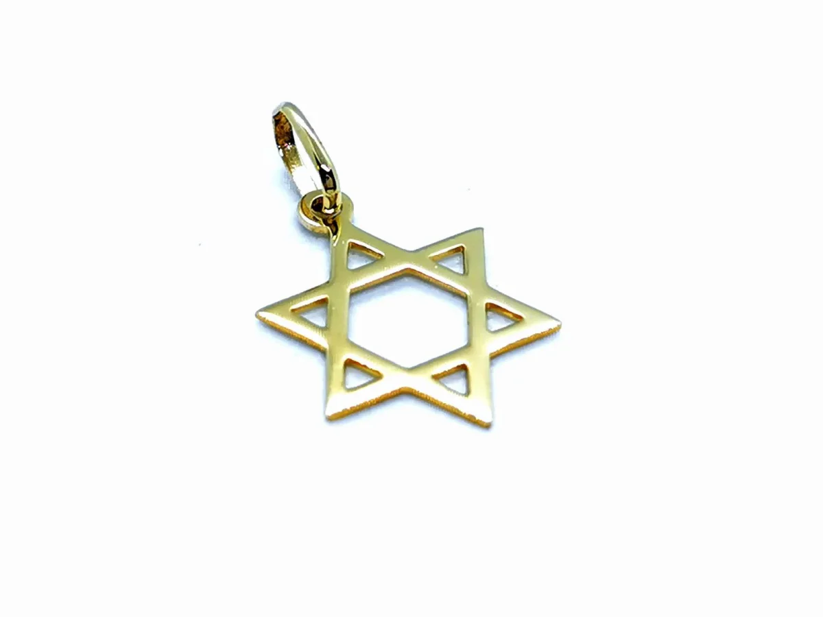 Pendentif en or jaune 750 millièmes (18 carats) testé, étoile de David, dimensions: 1,75 cm x 1,28 cm, poids total: 0,43 g, excellent état