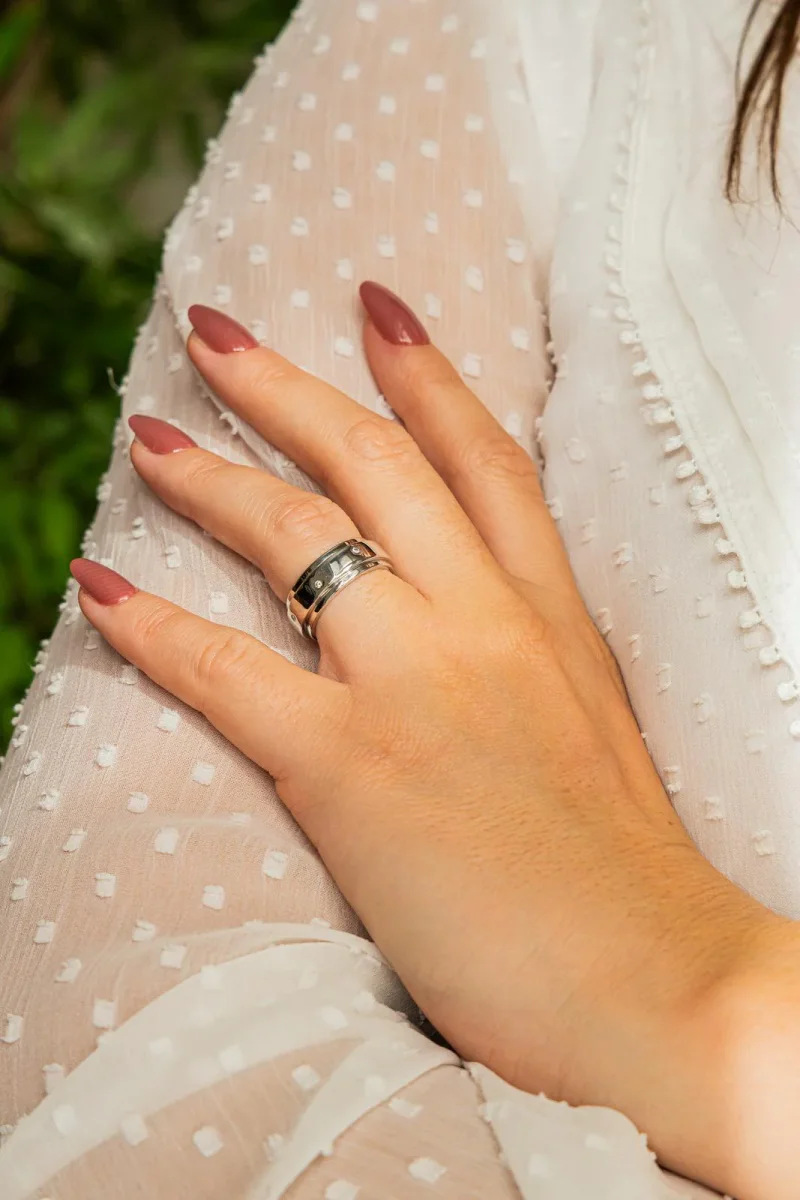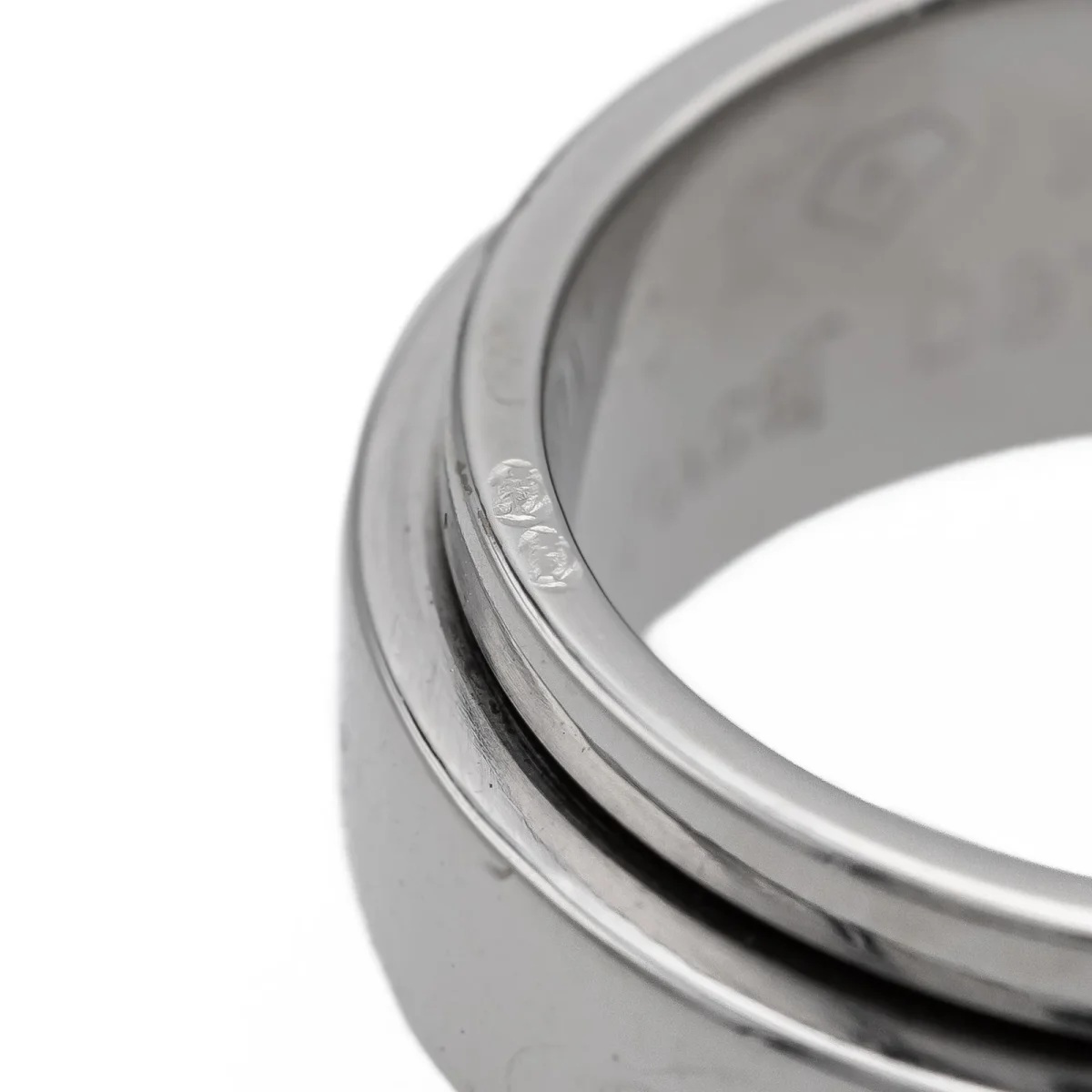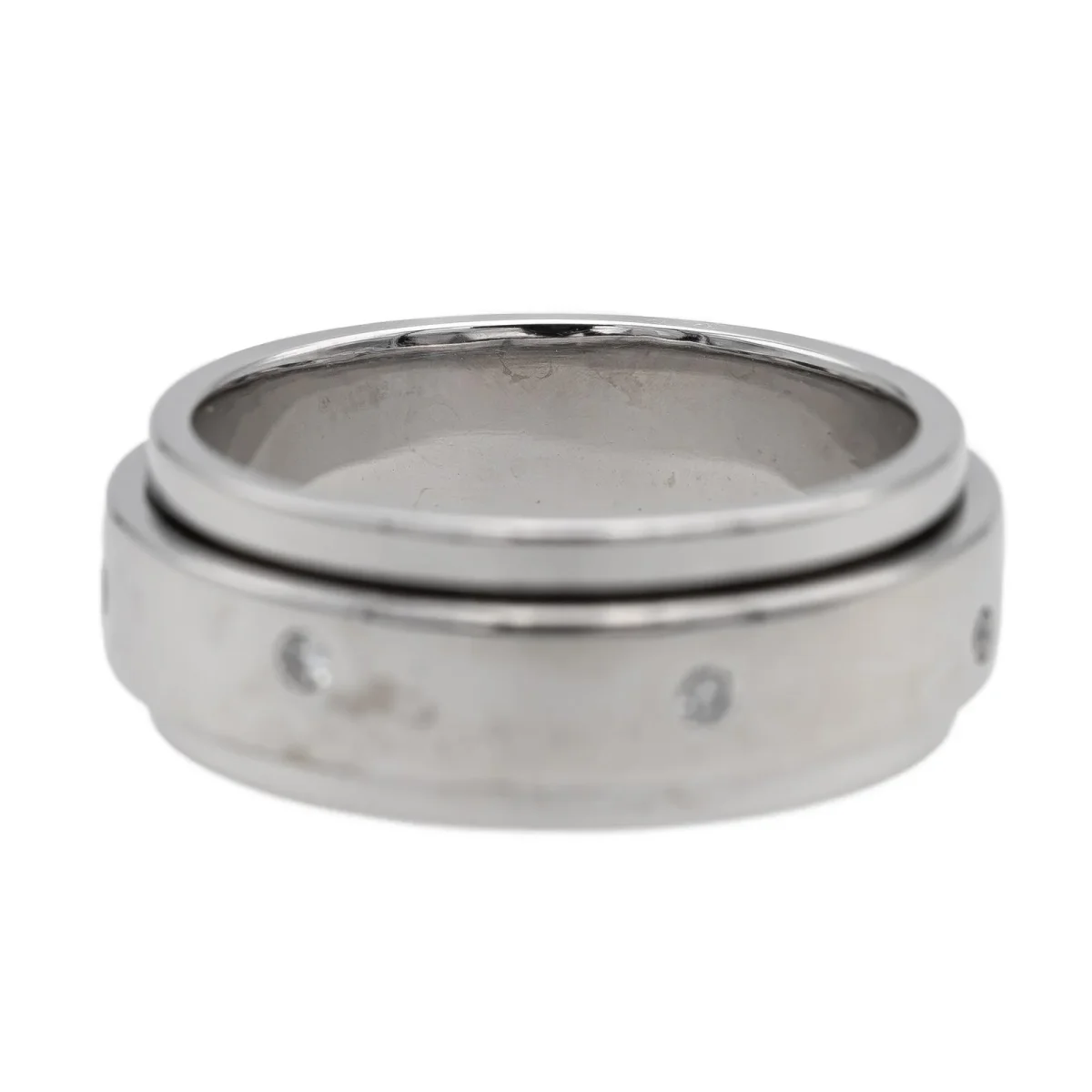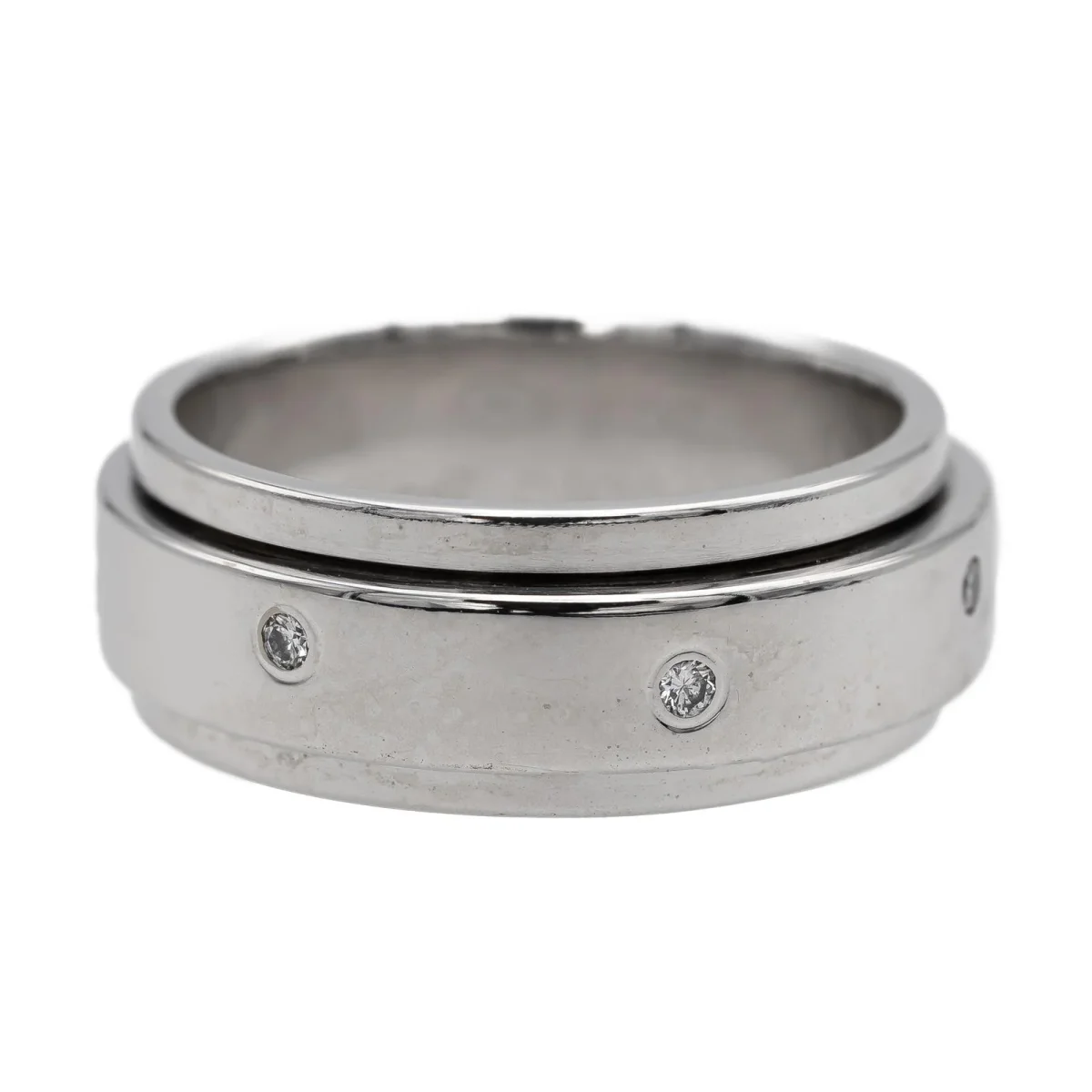 Bague signée de la maison Piaget, collection Possession, en or blanc 750 millièmes (18 carats), anneau mobile, serti de 7 diamants, taille brillant, environ G/VS, pour un total d’environ 0,07 ct, tour de doigt: 52, largeur: 0,72 cm, signée et numérotée: D9730, poids total: 8,74 g, poinçon hibou, Excellent état