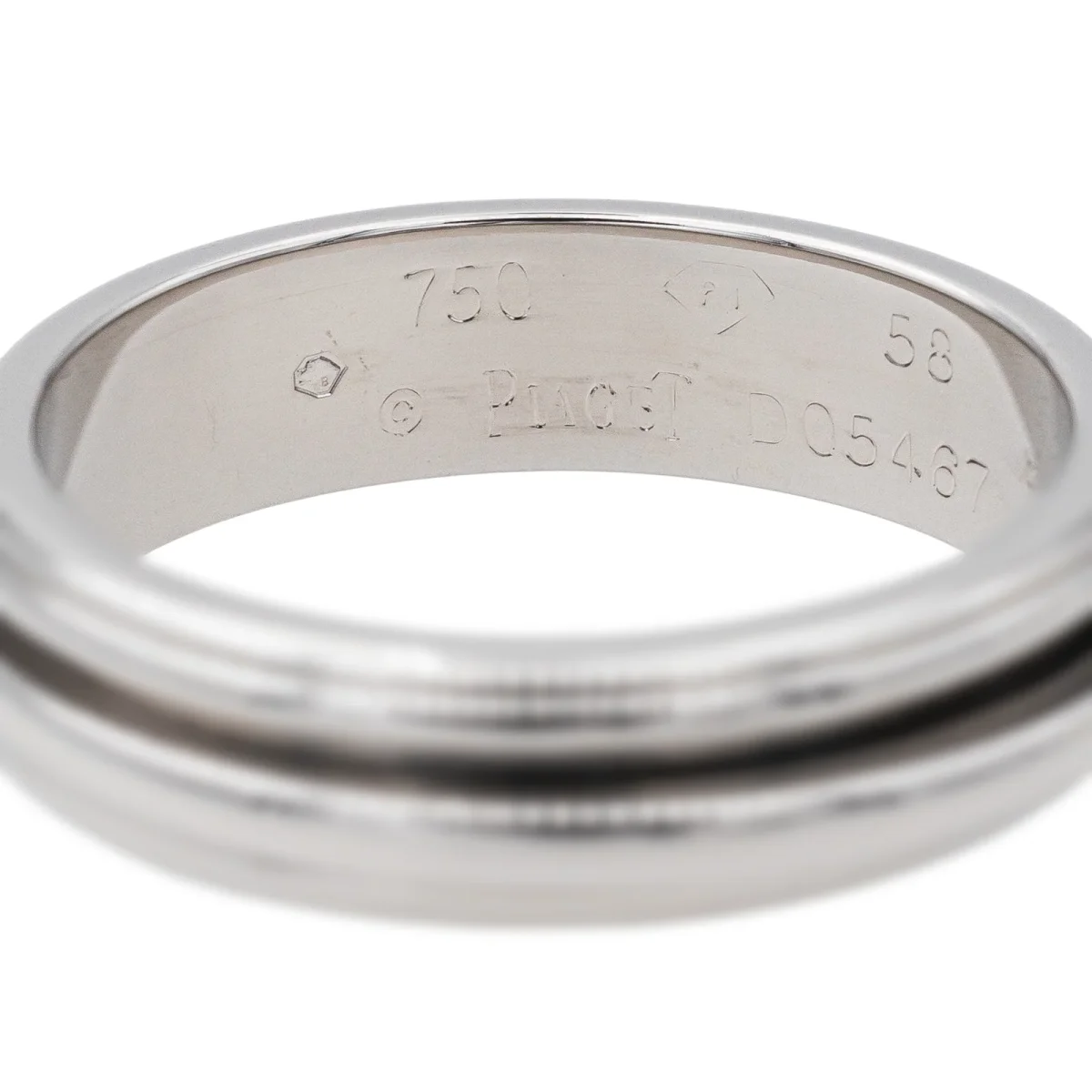 Alliance signée de la Maison Piaget en or blanc 750 millièmes (18 carats), modèle Possession, largeur sur le dessus : 0,54 cm, tour de doigt : 58, poids total : 8,25 g, poinçon Saint Bernard, numérotée : D05467, excellent état
