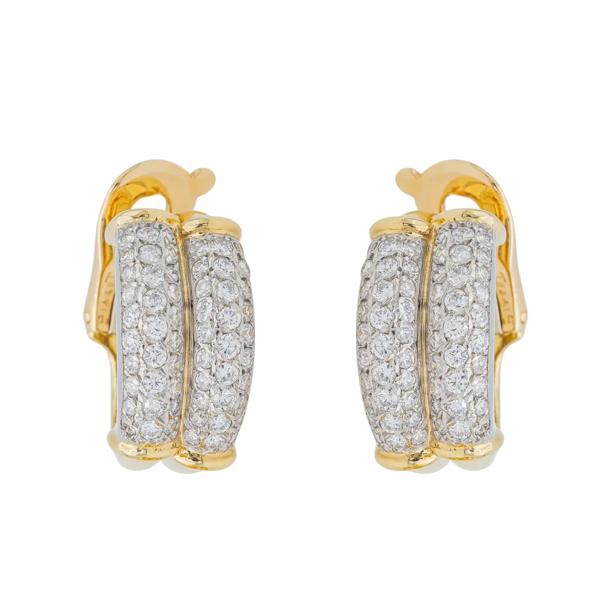 Paire de créoles signées de la Maison Piaget en or jaune et or blanc 750 millièmes (18 carats), 116 diamants taille brillant, environ G-SI, d’un poids total d’environ 3,84 ct, (80 diamant d’un poids d’environ 0,03 ct et 36 diamants d’un poids d’environ 0,04 ct), dimensions : 2,22 cm x 1,10 cm, poids total : 28,18 g, poinçon mercure, excellent état