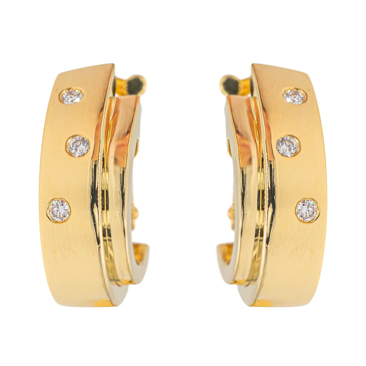 Boucles d’oreilles signées de la Maison Piaget en or jaune 750 millièmes (18 carats), numéro de série B61422, serties de 6 diamants taille brillant, environ H-SI, d’un poids total d’environ 0,06 ct, (chaque diamant d’un poids d’environ 0,01 ct), dimensions: 1,70 cm x 0,56 cm, poids total: 11,95 g, poinçon Saint-Bernard, excellent état