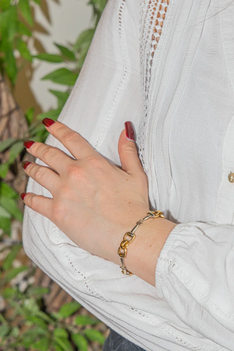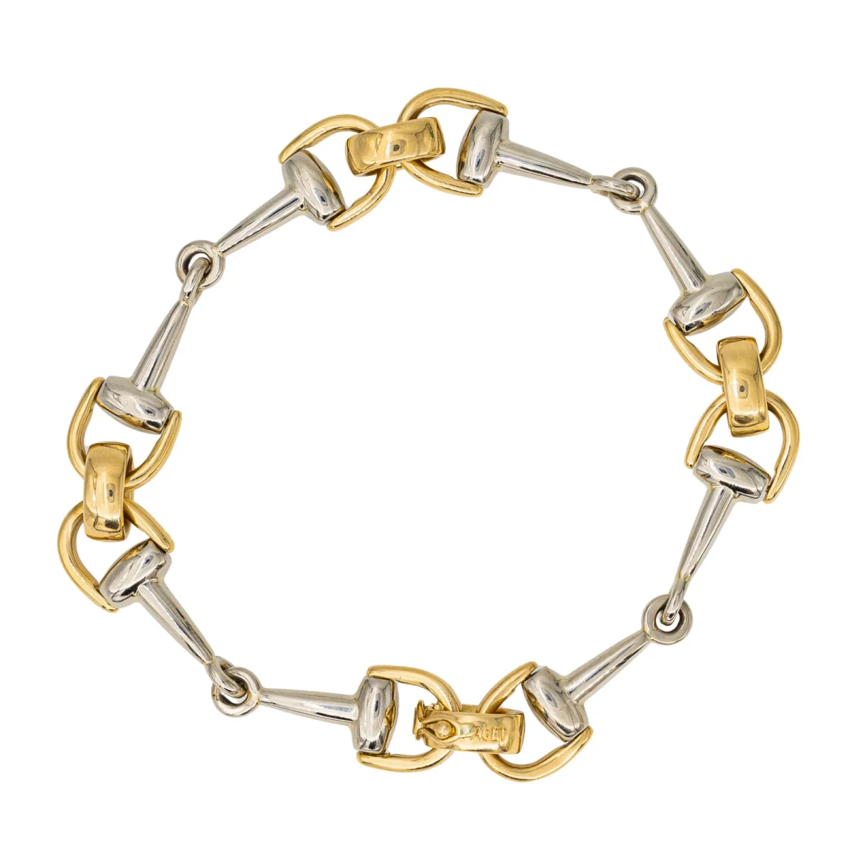 Bracelet en or jaune et or blanc 750 millièmes (18 carats) signé de la Maison Piaget et testé, motifs équestres représentant des mors, longueur: 19,50 cm, largeur: 1,00 cm, Poids total: 18,42 g, Excellent état