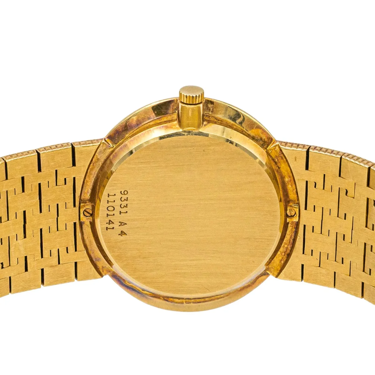Montre femme signée de la maison Piaget, en or jaune 750 millième, boitier ovale, mouvement mécanique, dimensions boîtier: 26,8 mm x 24 mm, longueur bracelet: 18,5 cm, largeur bracelet à l’avant: 1,68 cm, largeur bracelet à l’arrière: 1,38 cm, verre saphir, révisée, parfait état de fonctionnement, poids total: 60,23 g, poinçonnée et numérotée: 9331 A 4 110141, excellent état