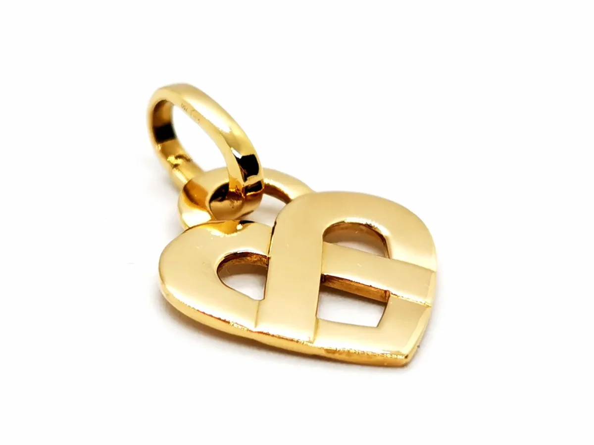 Pendentif signé de la maison Poiray, collection Coeur entrelacé GM, en or jaune 750 millièmes (18 carats), bélière amovible, dimensions: 2,24 cm x 1,94 cm, hauteur totale (bélière incluse): 3,15 cm, poids total: 4,58 g, poinçon tête d’aigle, signé et numéroté: 121300, prix neuf: 1350€, excellent état