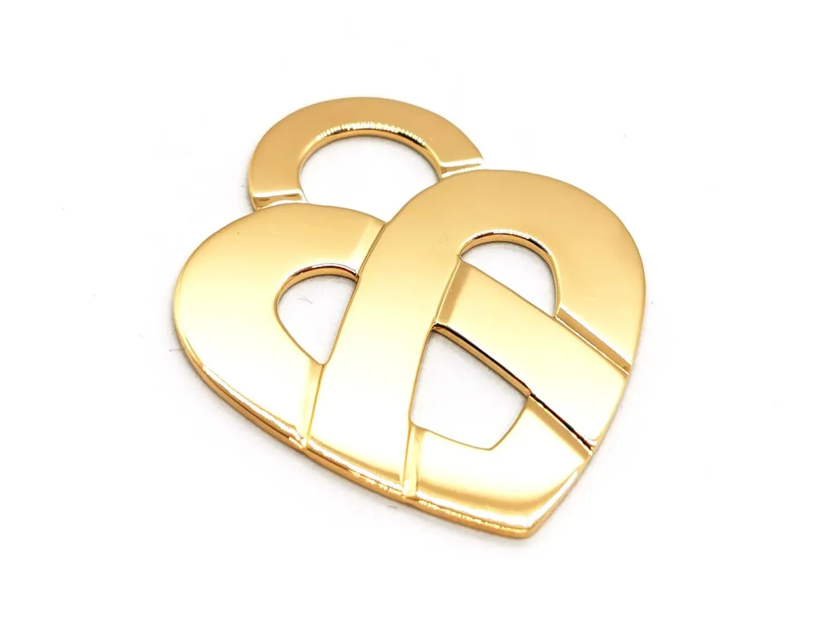 Pendentif signé de la maison Poiray, collection Cœur Entrelacé, très grand modèle, en or jaune 750 millièmes (18 carats), dimensions cœur: 4,7 cm x 3,86 cm, signé et numéroté: 60853, poids total: 16,54 g, poinçon tête d’aigle, excellent état, prix neuf: 4600€