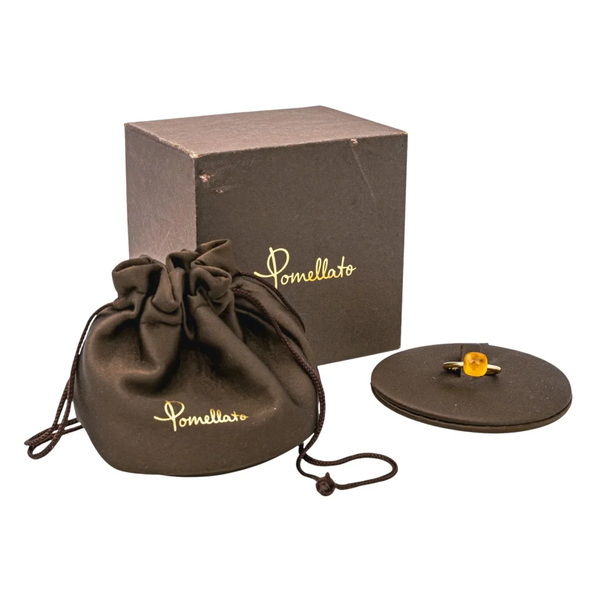 Bague signée de la Maison Pomellato en or rose 750 millièmes (18 carats), modèle Nudo, sertie d’une citrine, taille coussin, d’un poids total d’environ 2,05 cts, largeur sur le dessus : 0,86 cm, tour de doigt : 55, poids total : 5,22 g, poinçon hibou, vendue avec écrin, excellent état