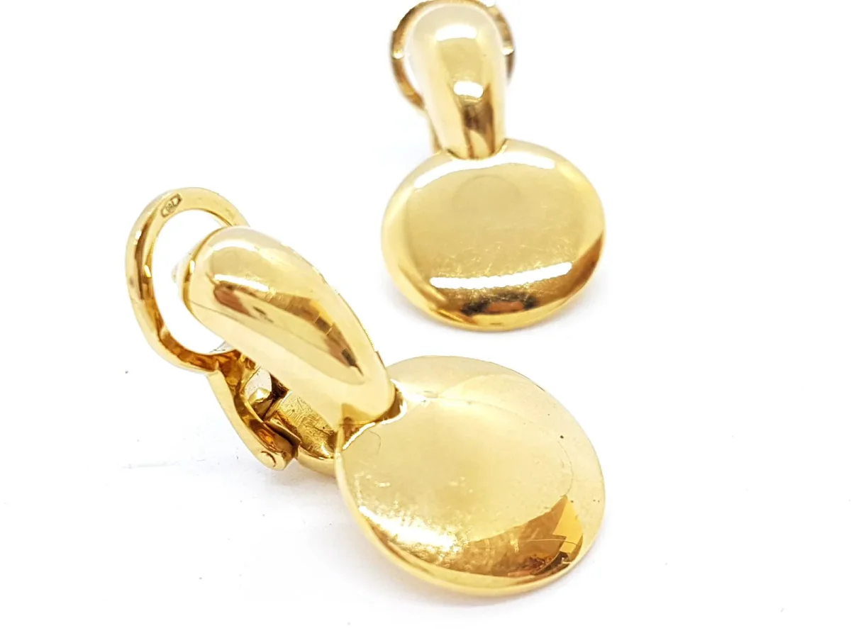 Boucles d’oreilles signées de la maison Pomellato en Or jaune 750 millièmes (18 carats), Poinçonnées, Clips, Poids total: 25.3 g, dimension 3 cm x 1.6 cm, Excellent état