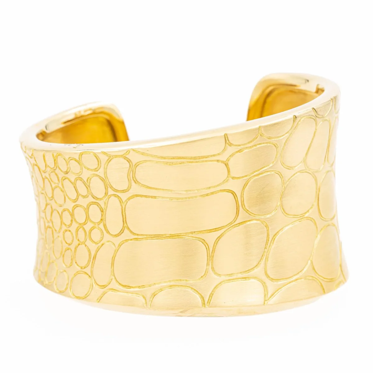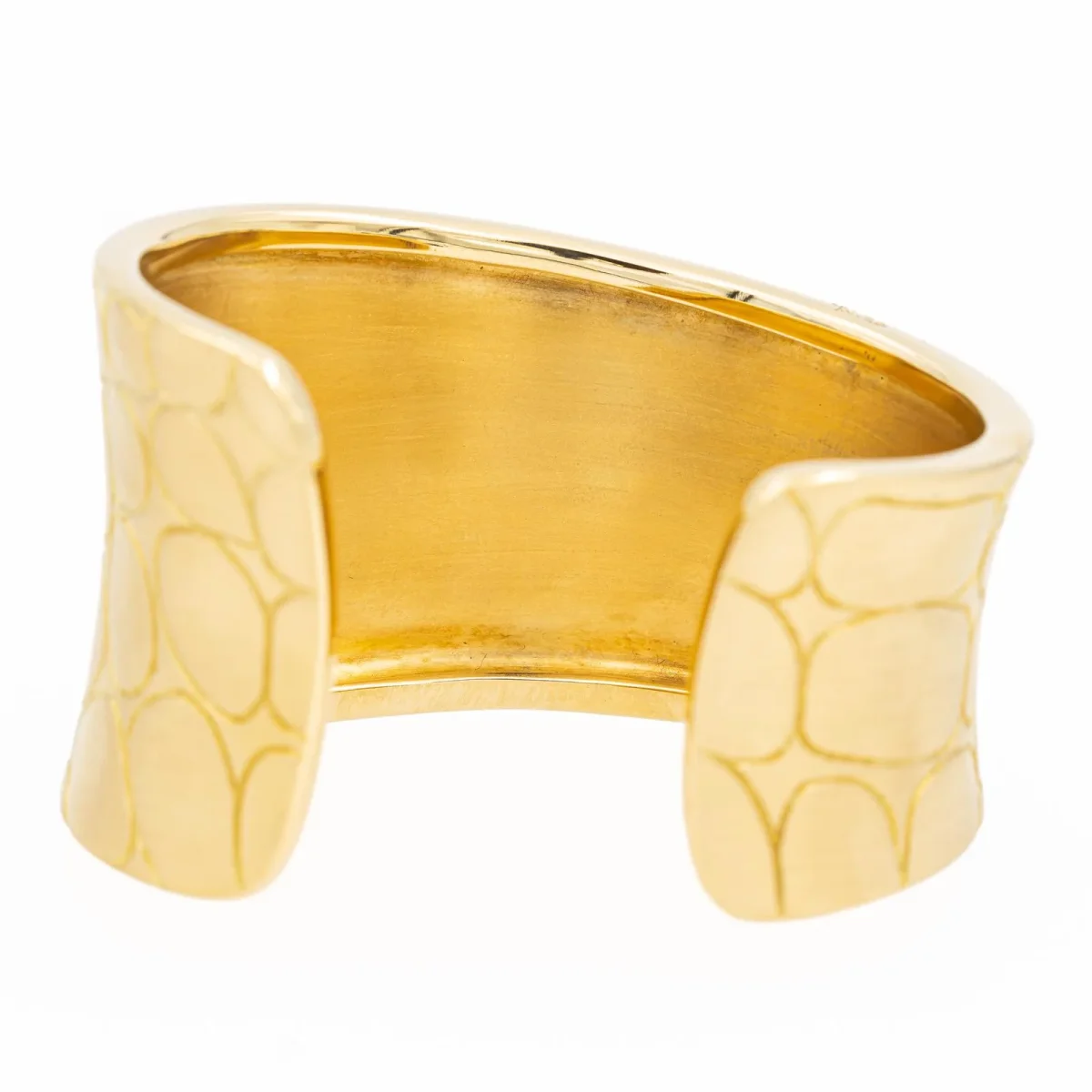 Bracelet signé de la Maison Pomellato, en or jaune 750 millièmes (18 carats), Modèle Cocco, Tour de poignet : 16 cm, largeur: 3,70 cm, ouverture étroite adaptée à un petit poignet, poids total : 129,96 g, Poinçon Tête d’aigle, Excellent état