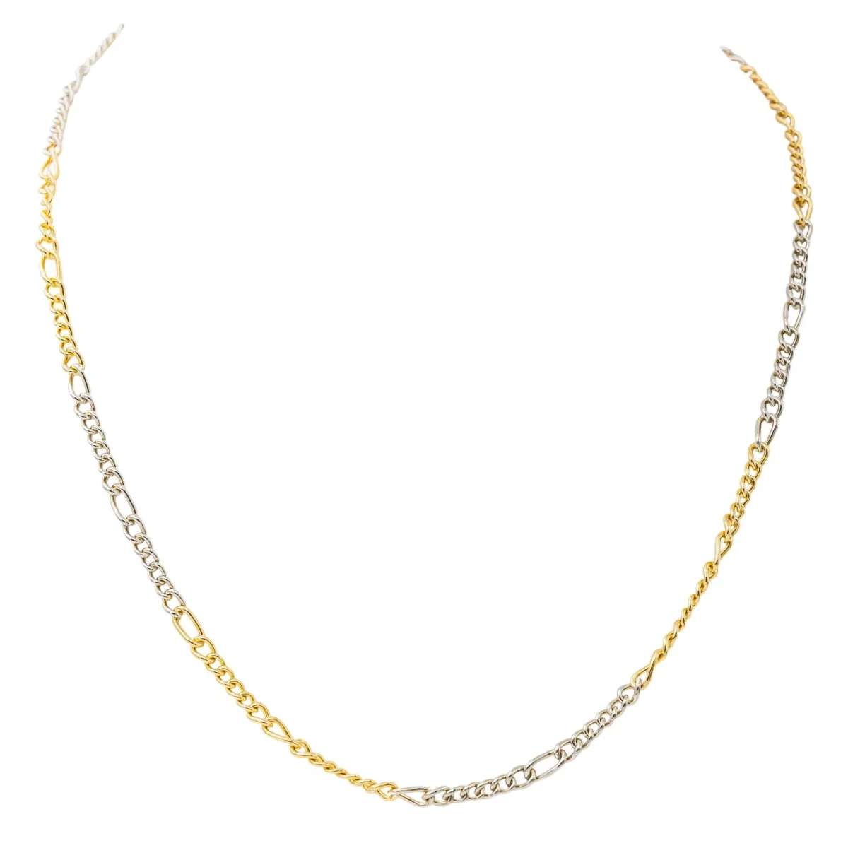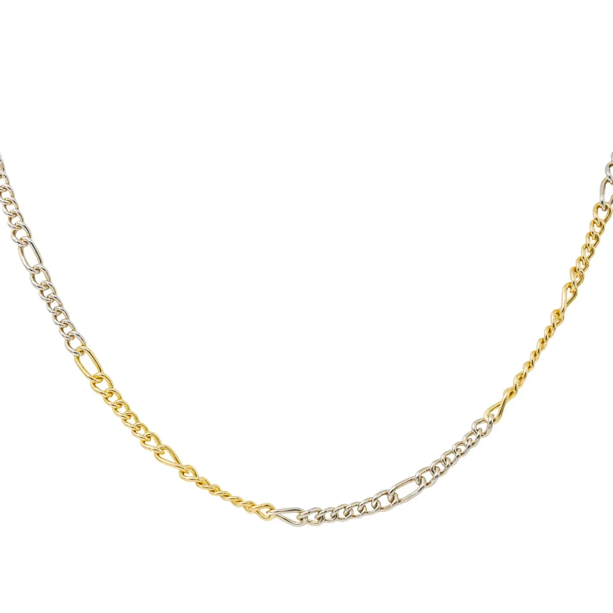 Chaine signée de la Maison Pomellato en or blanc et jaune 750 millièmes (18 carats), maille alternée, longueur : 62 cm, largeur : 0,41 cm, épaisseur : 0,18 cm, poids total : 29,37 g, poinçon hibou, numérotée : 489MI, excellent état