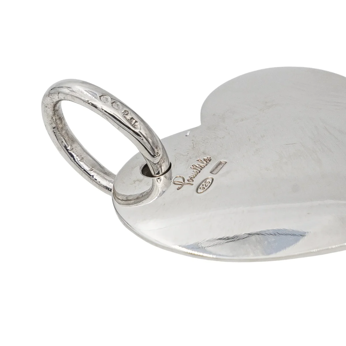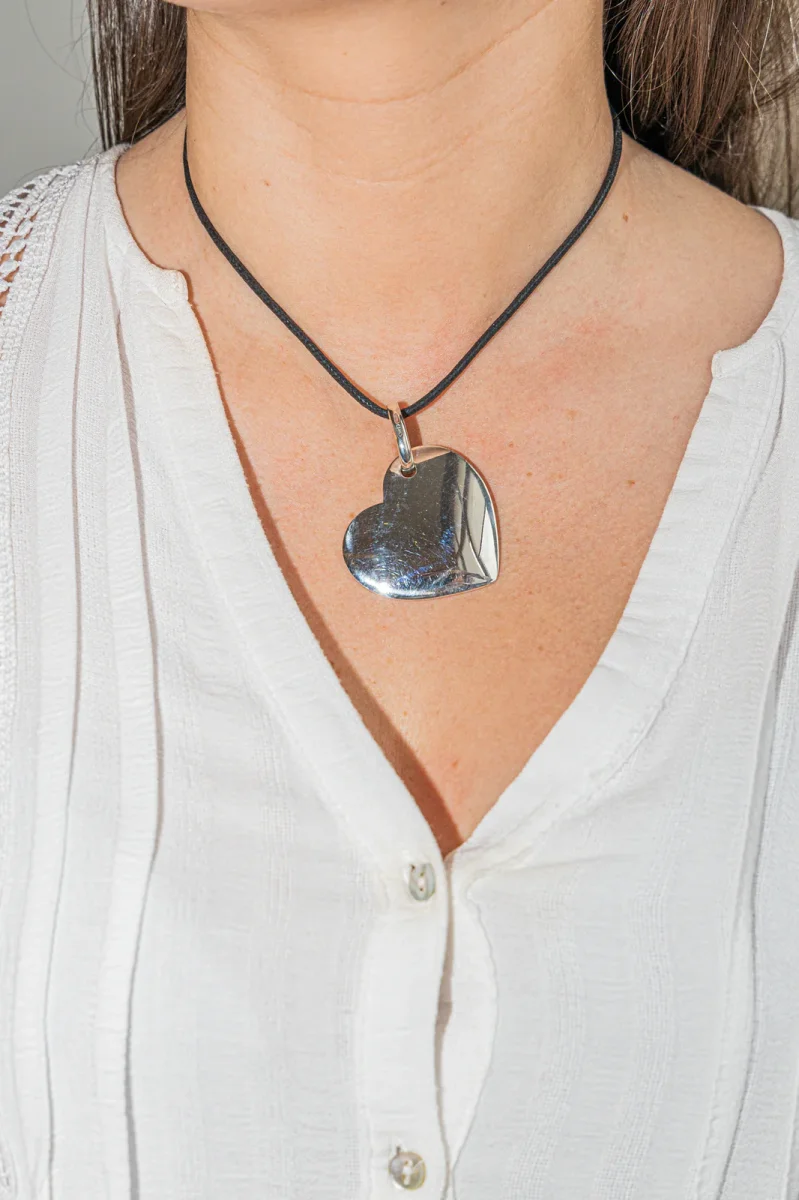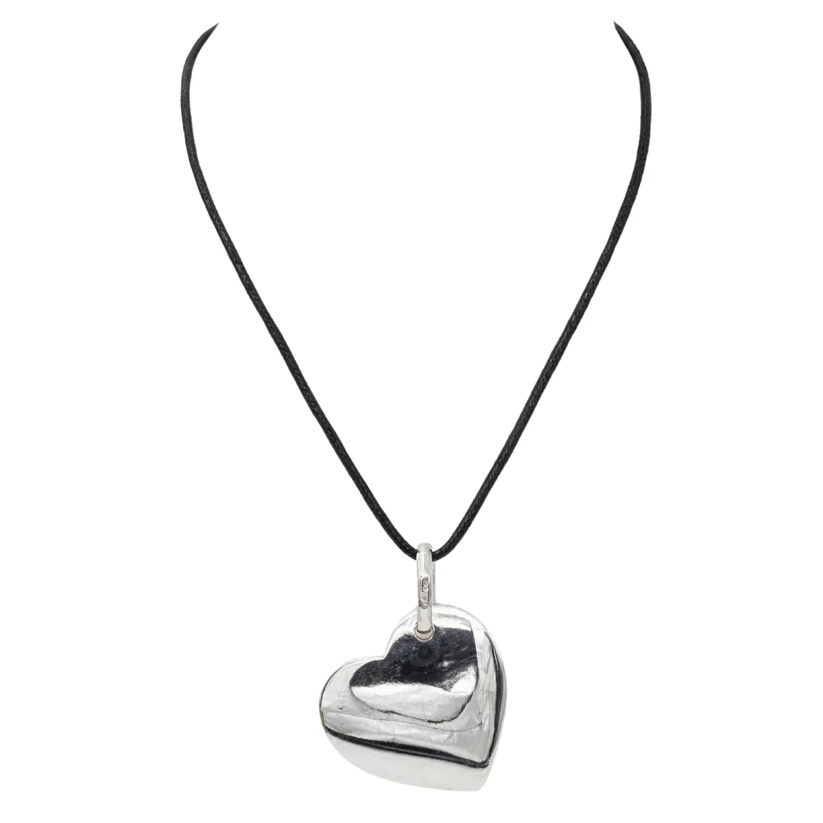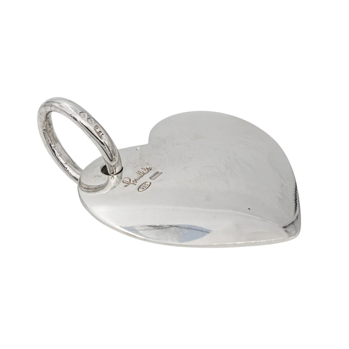 Pendentif cœur Pomellato en argent 925 millièmes, dimension avec bélière : 5,37 cm x 4,05 cm, poids : 47,90 g, poinçon minerve, excellent état