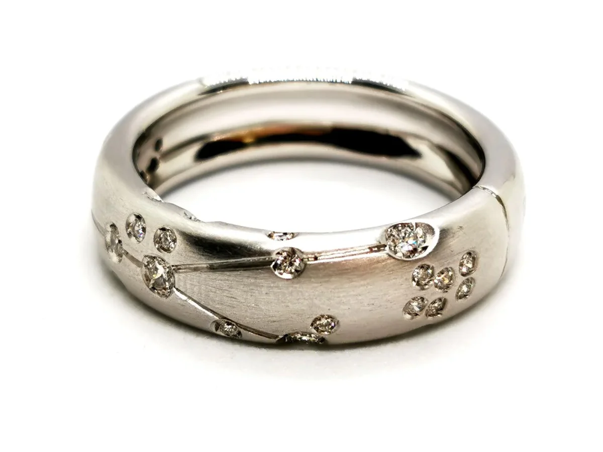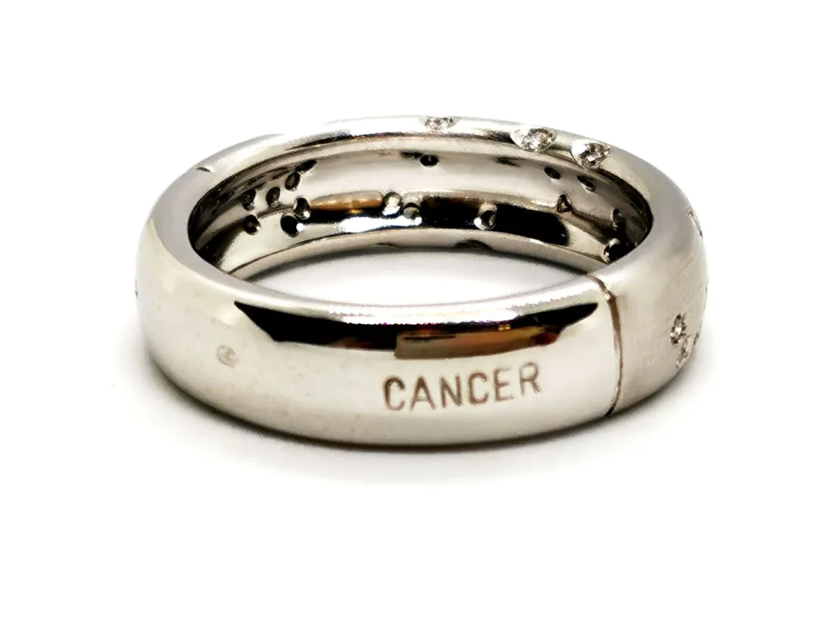 Bague signée Repossi, collection Astrale, en or blanc 750 millièmes (18 carats), signe cancer, sertie de 29 diamants, taille brillant environ G/VS, pour un total d’environ 0,26 ct, tour de doigt: 57,5 , largeur: 0,6 cm, poids total: 10,01 g, poinçon hibou, excellent état