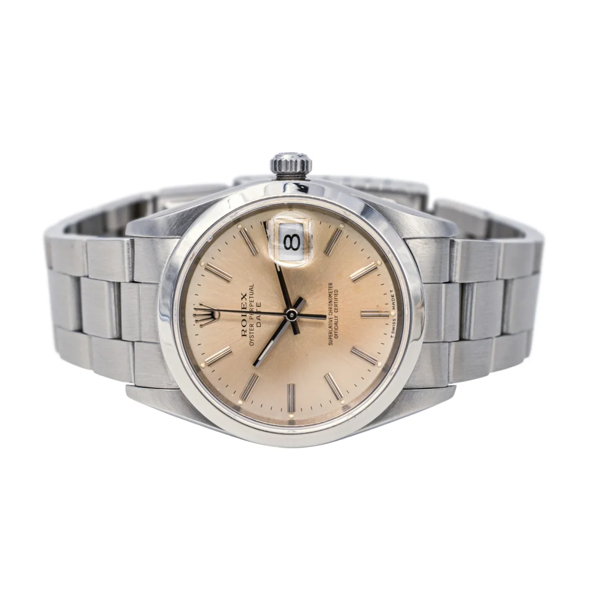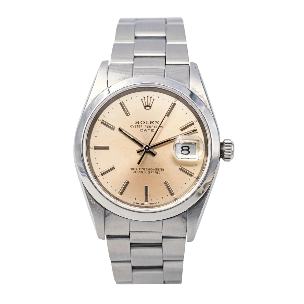 Montre Rolex modèle Datjust acier, n°série N177793, cadran champagne à index bâton, mouvement mécanique à remontage automatique, boîtier 34 mm, verre saphir, bracelet oyster à boucle déployante (taille poignet 20 cm ajustable, largeur bracelet 1,86 cm en chute), poids total : 89,60 g, pochette d’origine, année 1991, révision complète, excellent état