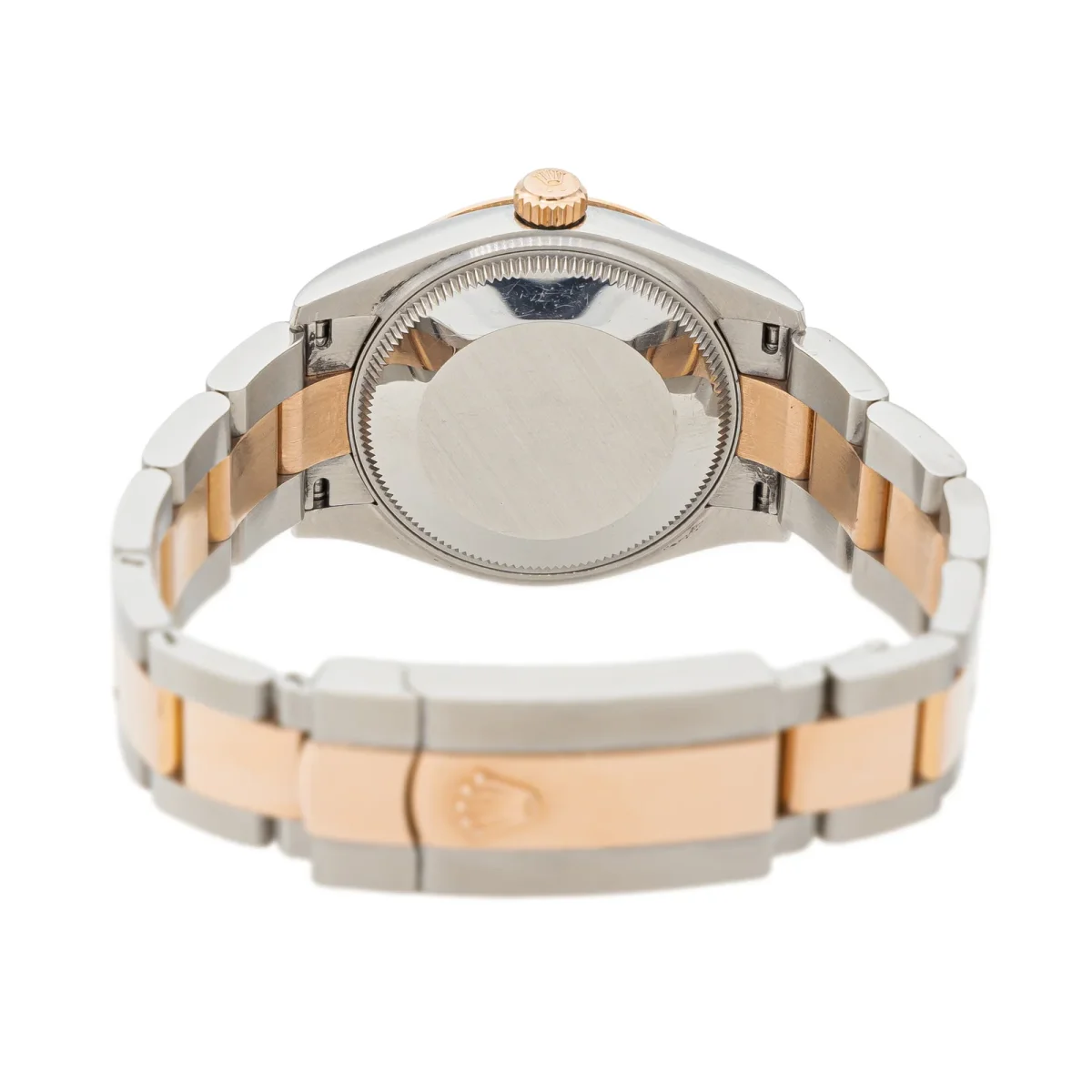 Montre Rolex modèle Datejust acier et or rose 750 millièmes (18 carats) réf 278241, n°série 4F4887A0 , cadran rosé à index diamants d’un poids total env 0,10ct (chaque diamant d’un poids d’environ 0,01ct), mouvement mécanique à remontage automatique, boitier 31 mm, verre saphir, bracelet oyster or rose et acier à boucle déployante (taille poignet 19 cm, largeur bracelet 1,35 cm), poids total : 99,09 g, full set (boite et papier d’origine, maillons supplémentaire), année 2021, Excellent état