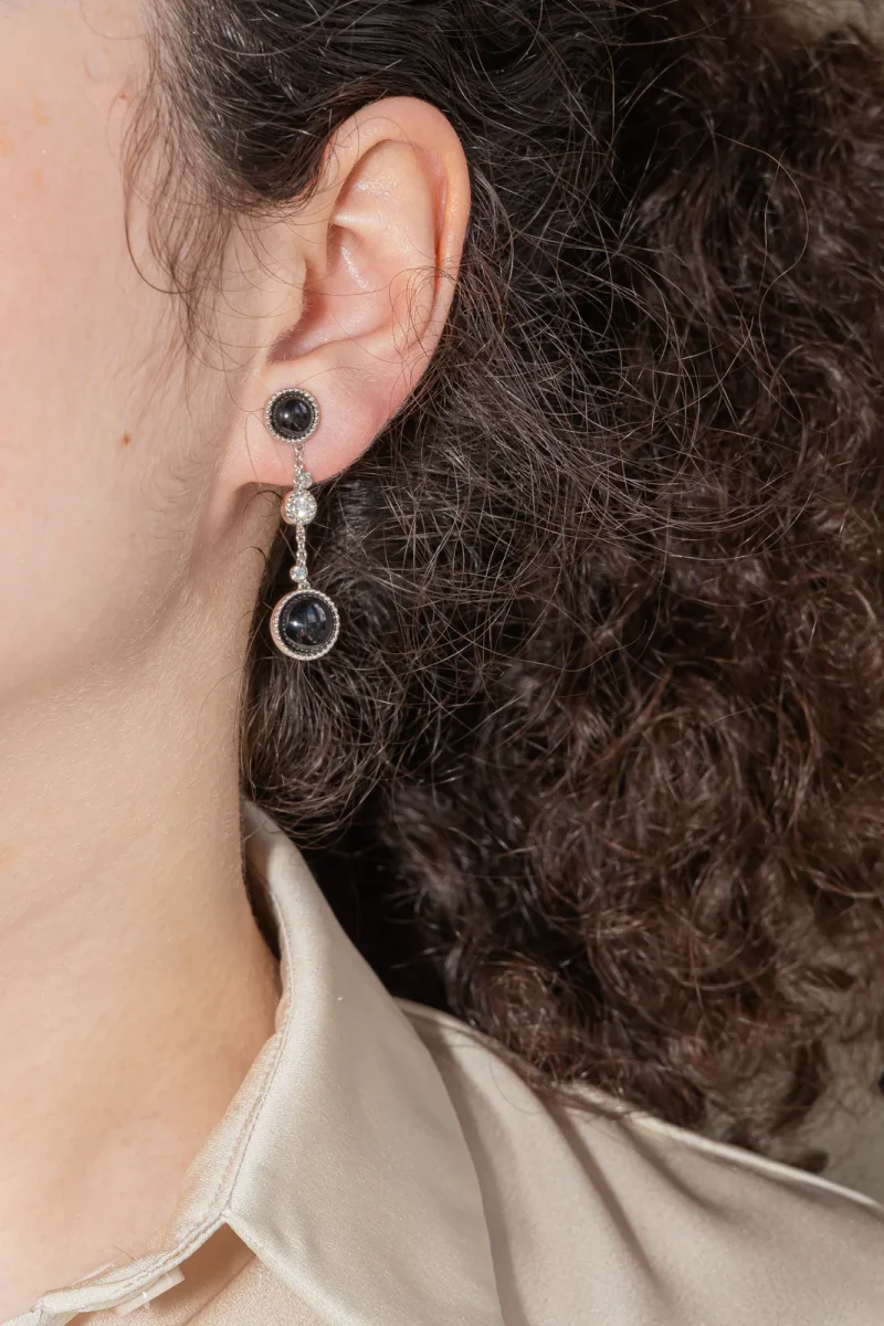 Susie otero Boucles d’oreilles Pendantes Or blanc Diamant, Onyx