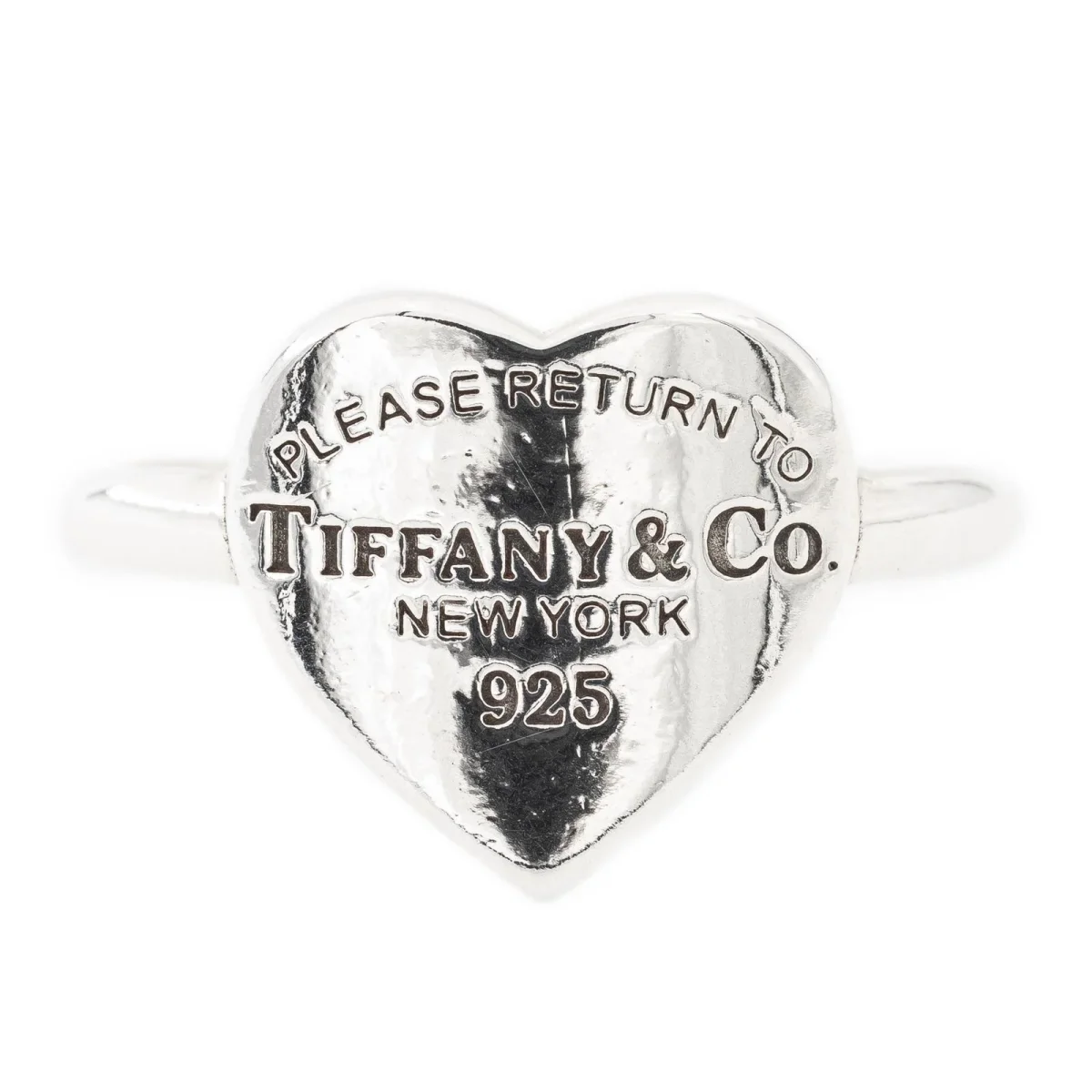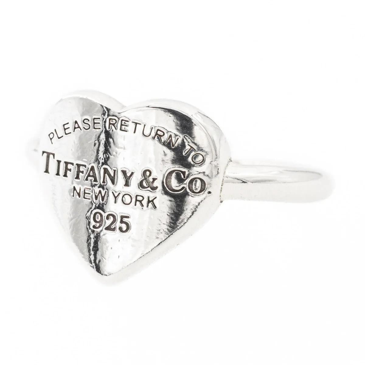 Bague cœur Tiffany & Co, en argent 925millièmes testé, modèle « Please return to Tiffany & Co New York », Poids total: 3,00 g, Largeur sur le dessus: 1,2 cm, Tour de doigt: 54, excellent état