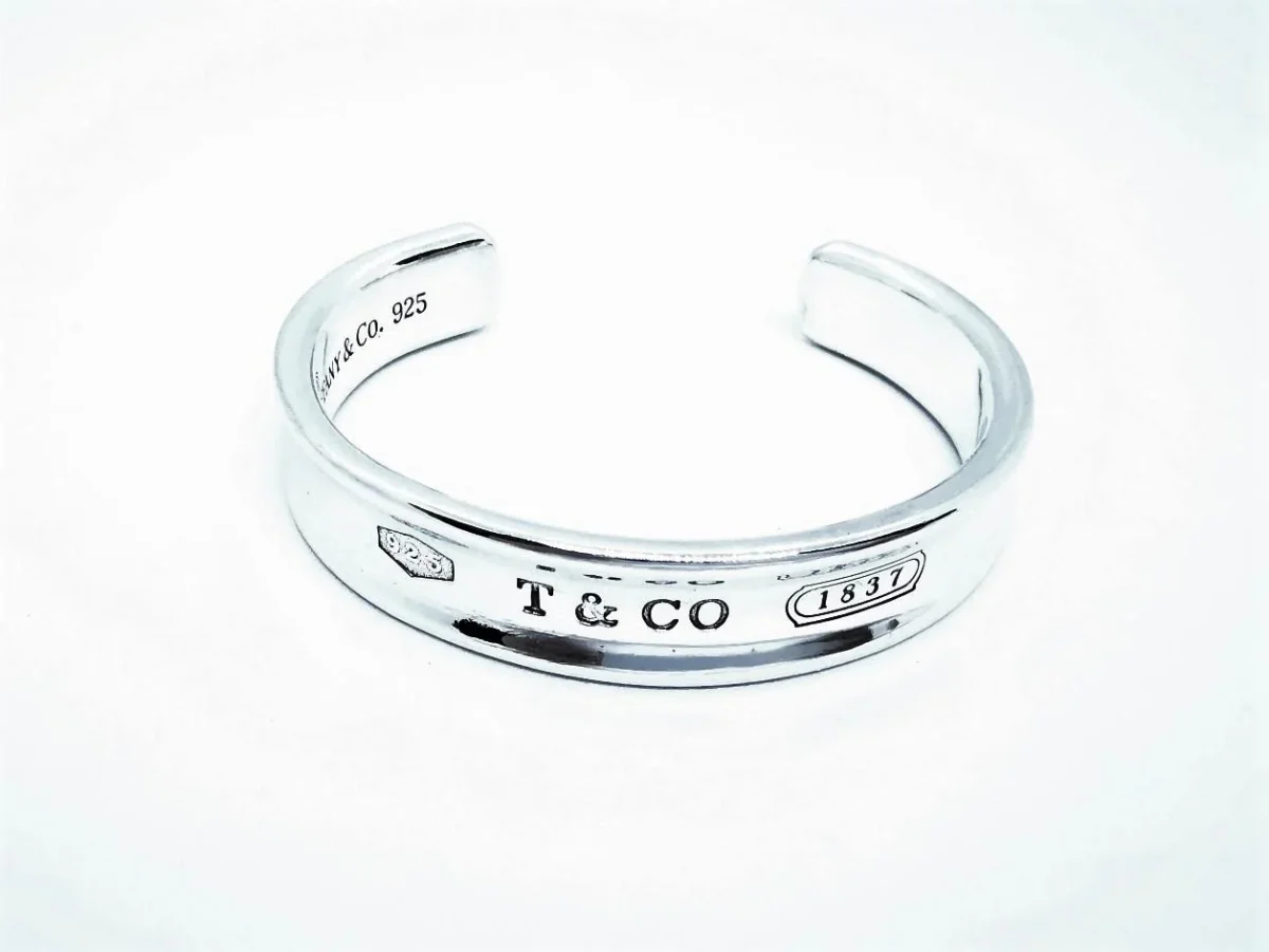 Bracelet signé de la maison Tiffany & co 1837, en argent 925 millièmes, jonc rigide ouvert, taille: 17 cm, largeur: 1,16 cm, épaisseur: 0,3 cm, poids total: 41,53 g, prix neuf: 490€, excellent état