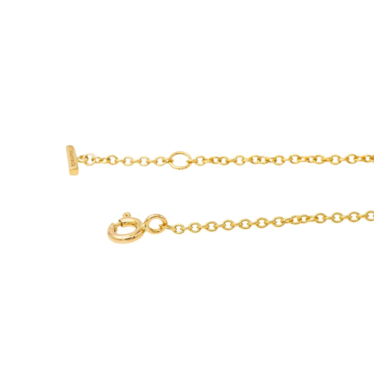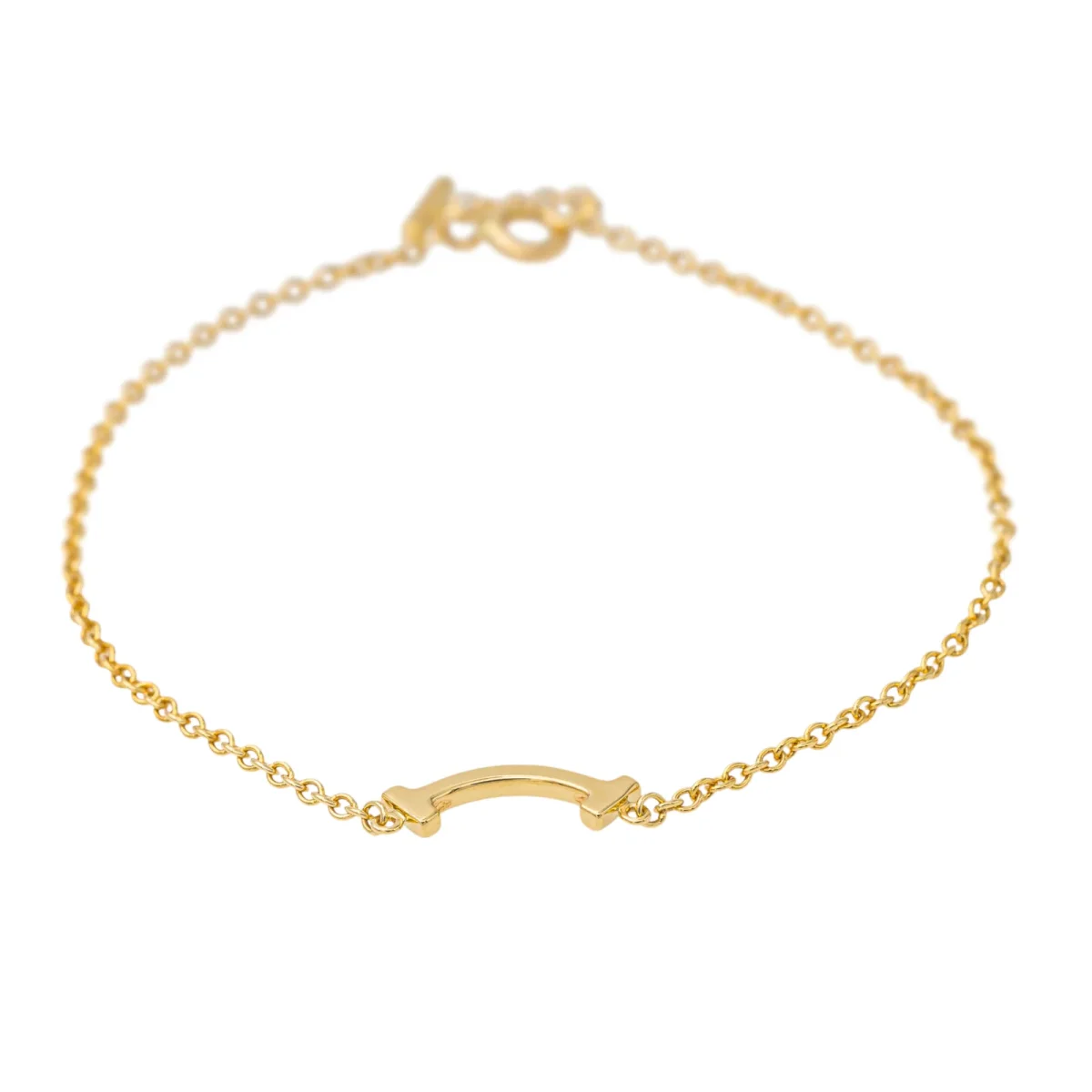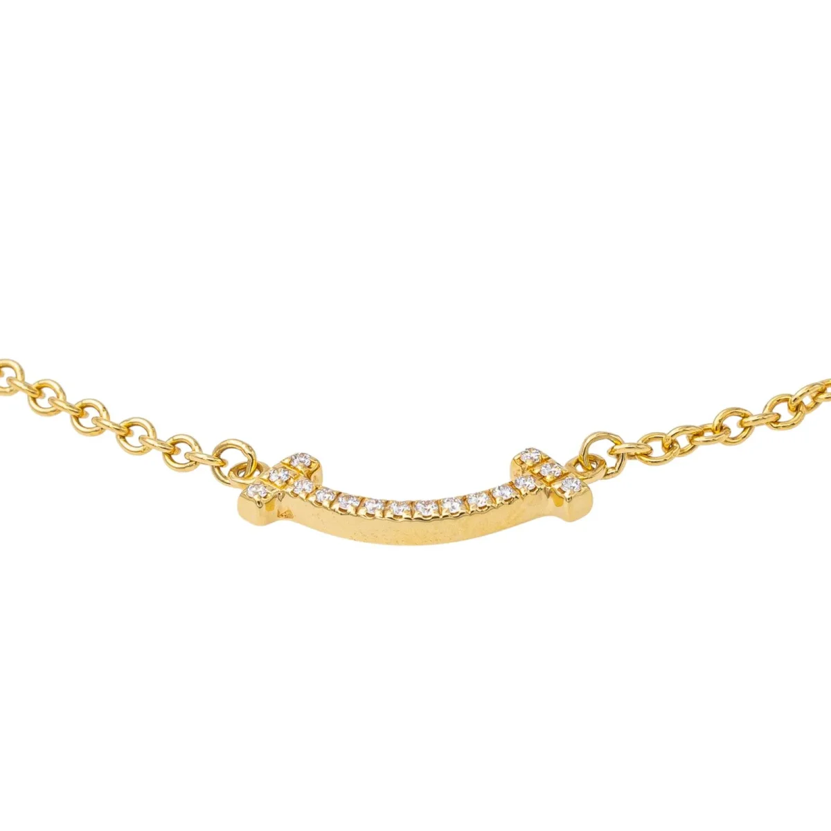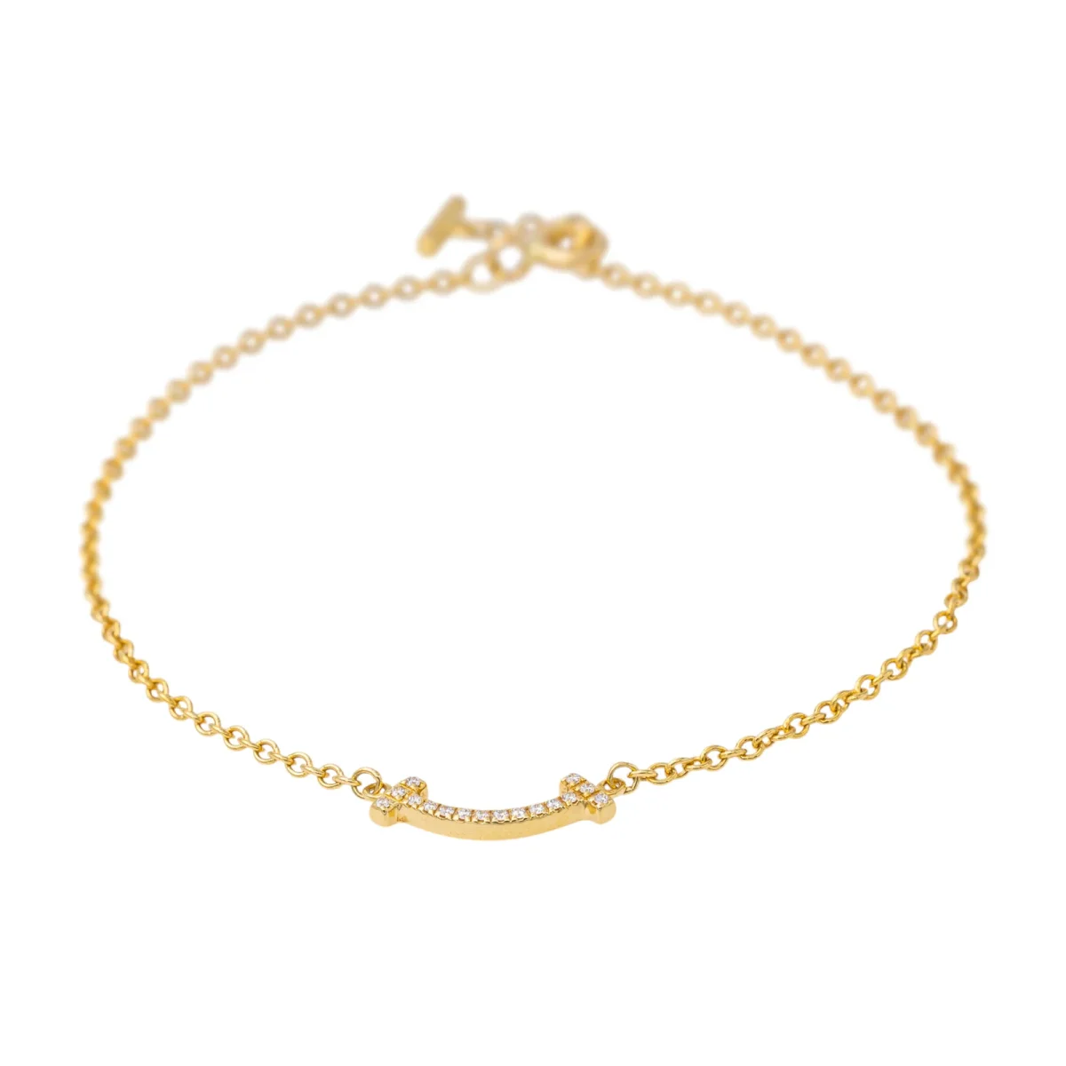 Bracelet Tiffany’s & Co en or jaune 750 millièmes (18 carats), modèle Smile, serti de diamants, 16 diamants taille brillant, environ G-VS, d’un poids total d’environ 0,04 ct, (chaque diamant d’un poids d’environ 0,0025 ct), maille souple, longueur : 16,5 cm, largeur : 1,45 cm, épaisseur : 0,15 cm, fermoir anneau ressor, poids total : 1,79 g, excellent état