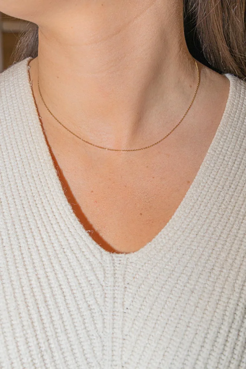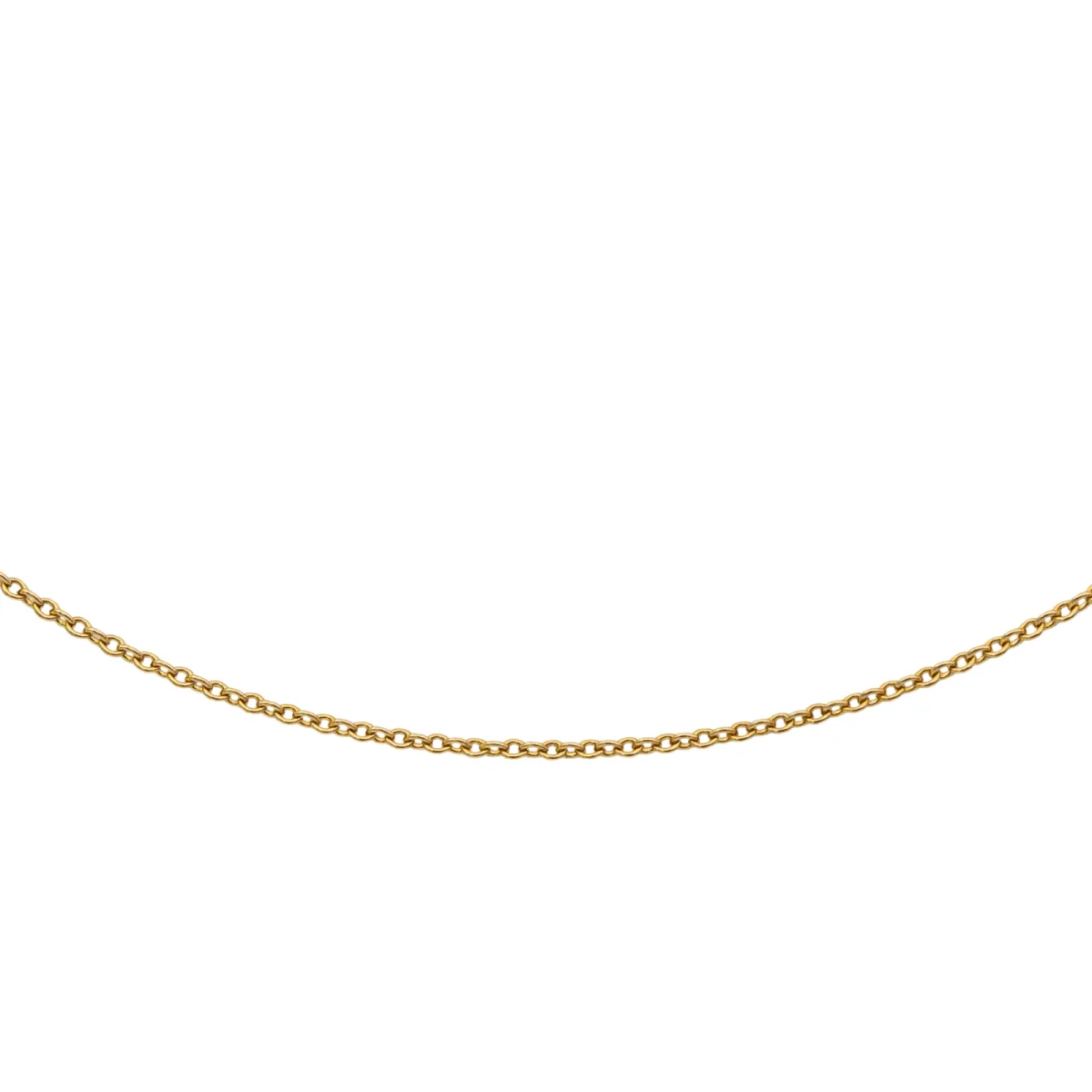 Chaine signée de la Maison Tiffany & Co, en or jaune 750 millièmes (18 carats) testé, maille jaseron, longueur: 40,50 cm, épaisseur: 0,10 cm, poids total: 1,43 g, excellent état