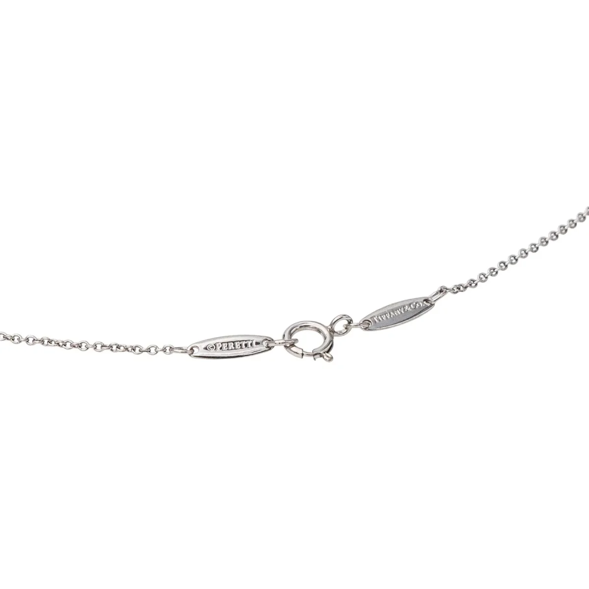 Collier signé de le Maison Tiffany & Co en platine 950 millièmes, testé, modèle Diamonds by the Yard, serti d’un diamant taille brillant, environ H-VS, d’un poids total d’environ 0,44 ct, maille jaseron, longueur : 43,00 cm, longueur de la partie comprenant les motifs : 0,63 cm, largeur de la chaîne : 0,06 cm, poids total : 2,63 g, numéroté 26621607, excellent état