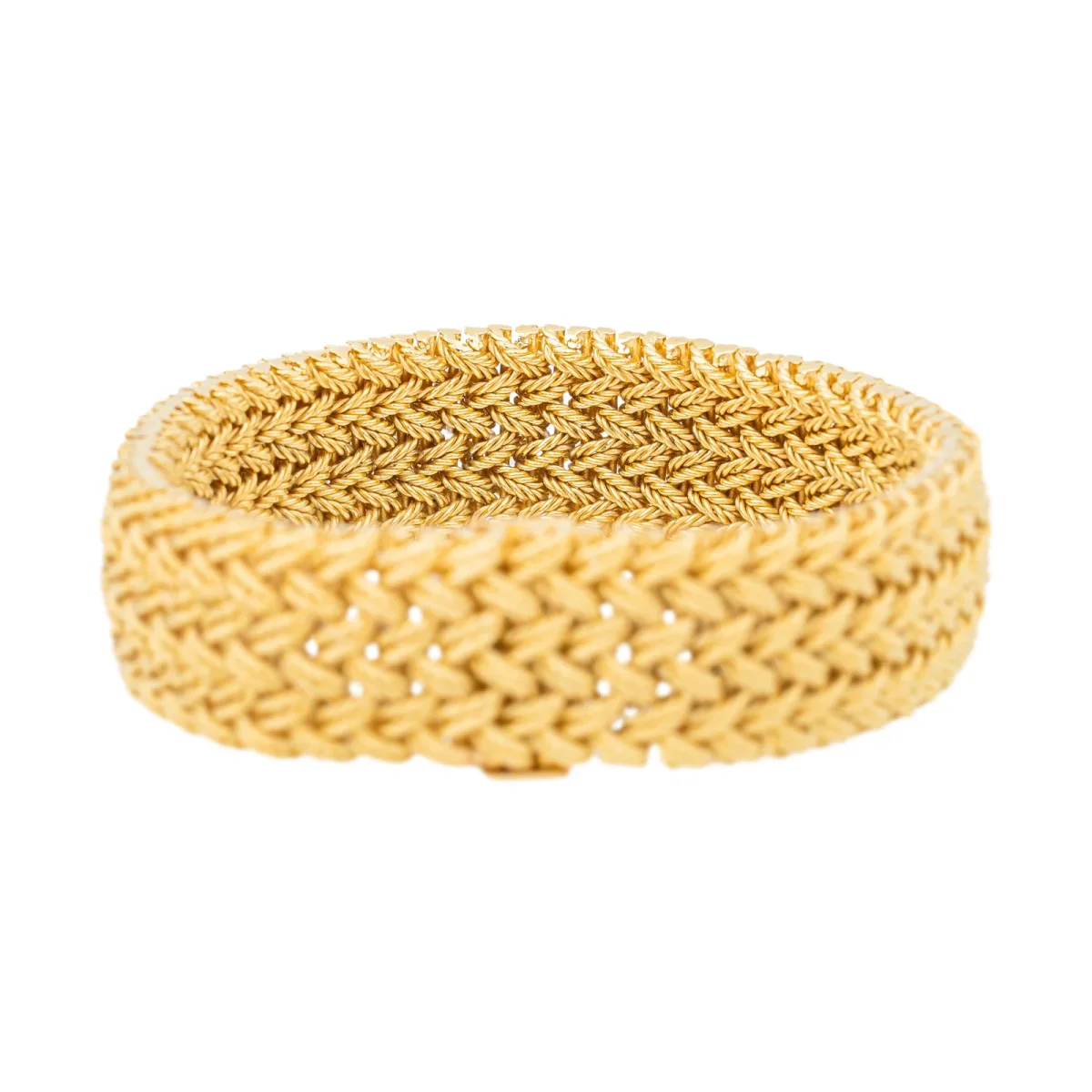 Bracelet signé de la maison Van Cleef & Arpels et Gay Frères, en or jaune 750 millièmes (18 carats), maille polonaise, massive, longueur: 20 cm, largeur: 1,80 cm, épaisseur: 0,50 cm, poids total: 101,42 g, poinçons tête d’aigle, poinçon de maitre Gay Frères, numéroté: B5223, excellent état